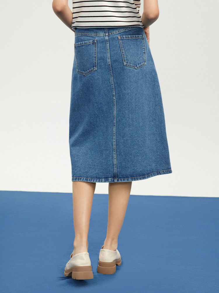 Летняя модная ретро джинсовая юбка, средней длины, А-силуэт