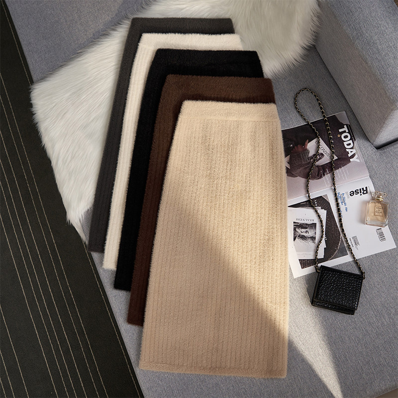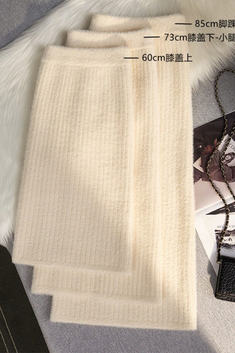 Бархатная зимняя юбка, шерстяной приталенный трикотажный свитер, высокая талия, с акцентом на бедрах