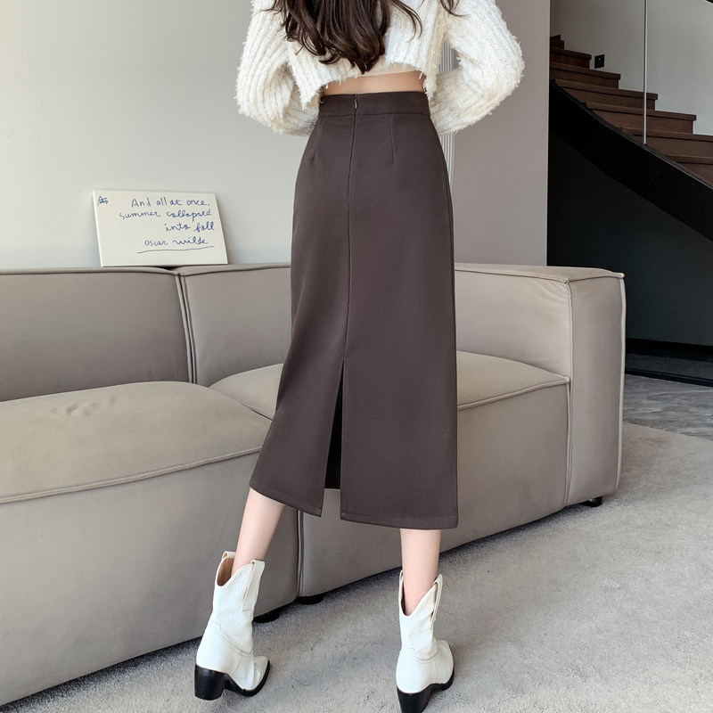 Шерстяная демисезонная длинная юбка, увеличенная толщина, подходит для подростков, средней длины, высокая талия, А-силуэт, свободный прямой крой, с акцентом на бедрах