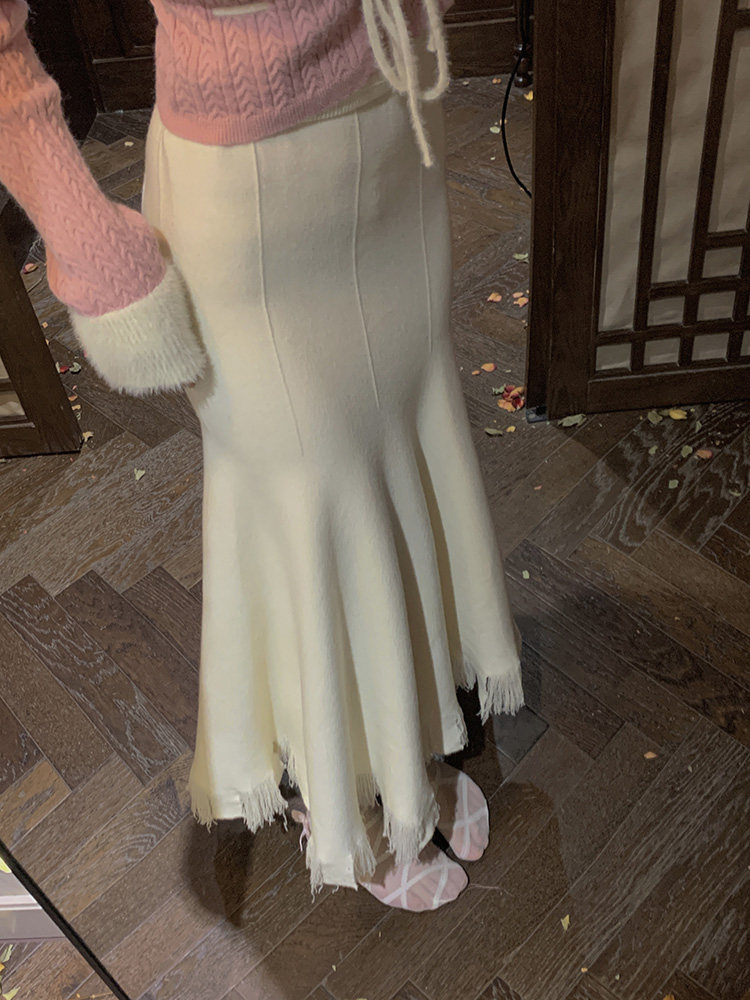 Длинная приталенная трикотажная ретро длинная юбка, крой «рыбий хвост», средней длины, А-силуэт
