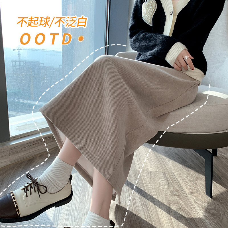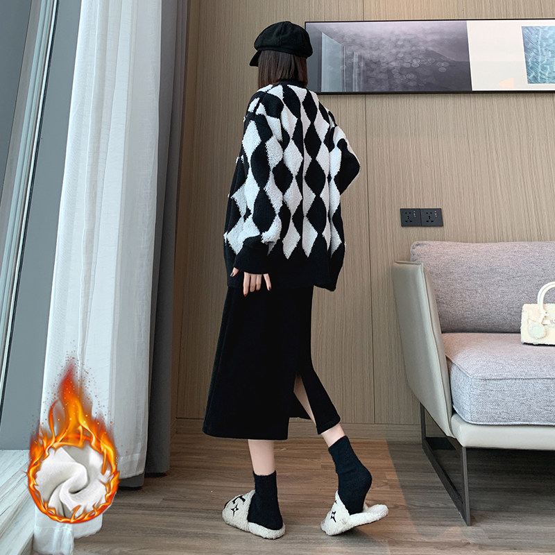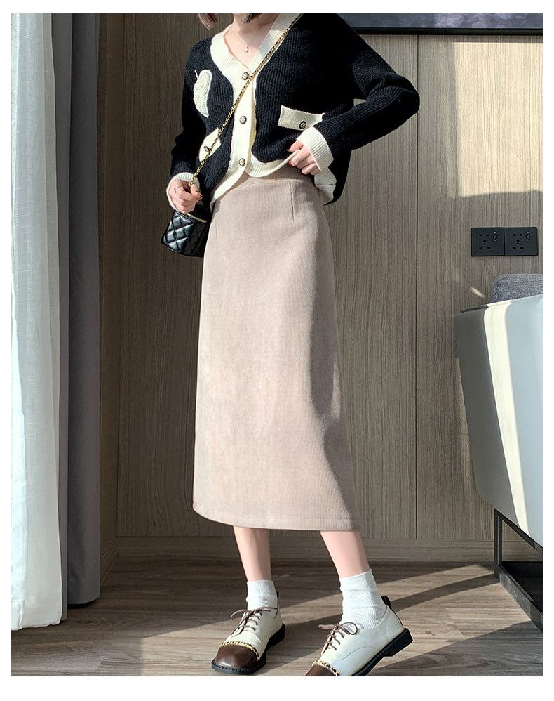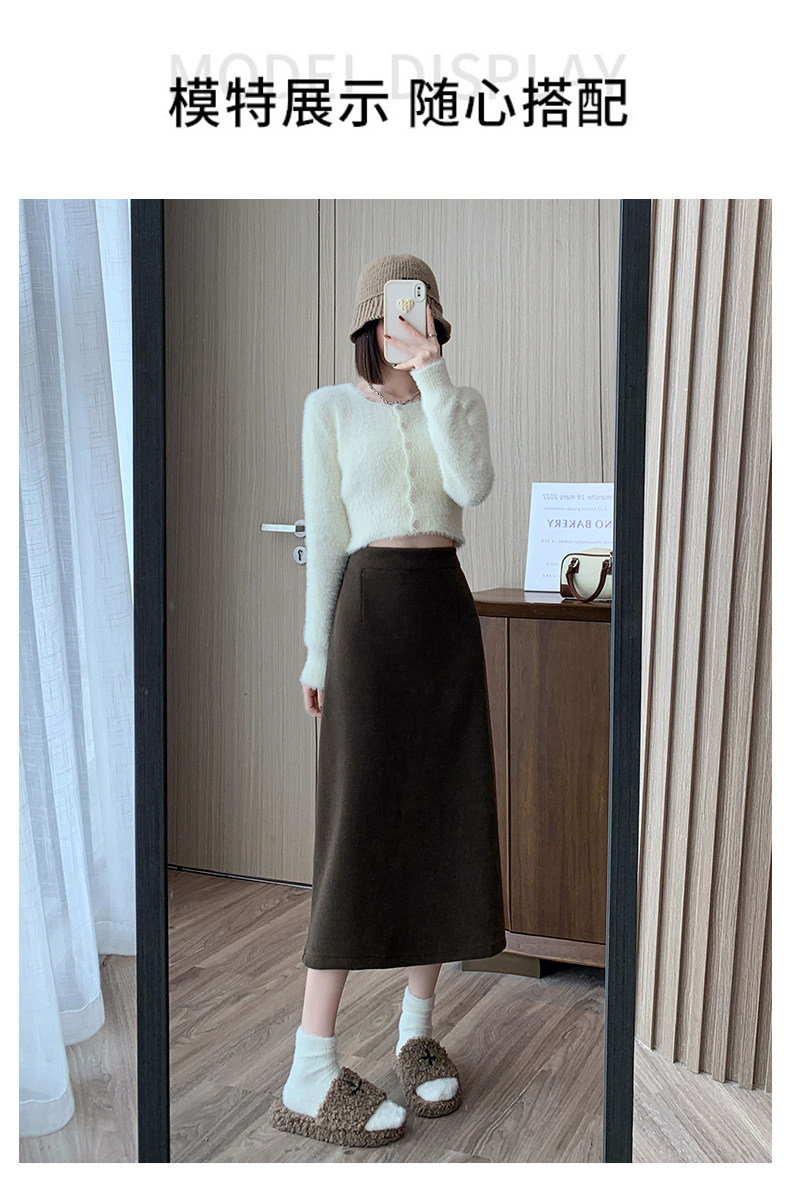 Утепленная демисезонная юбка, шерстяной длинный приталенный свитер, средней длины, А-силуэт