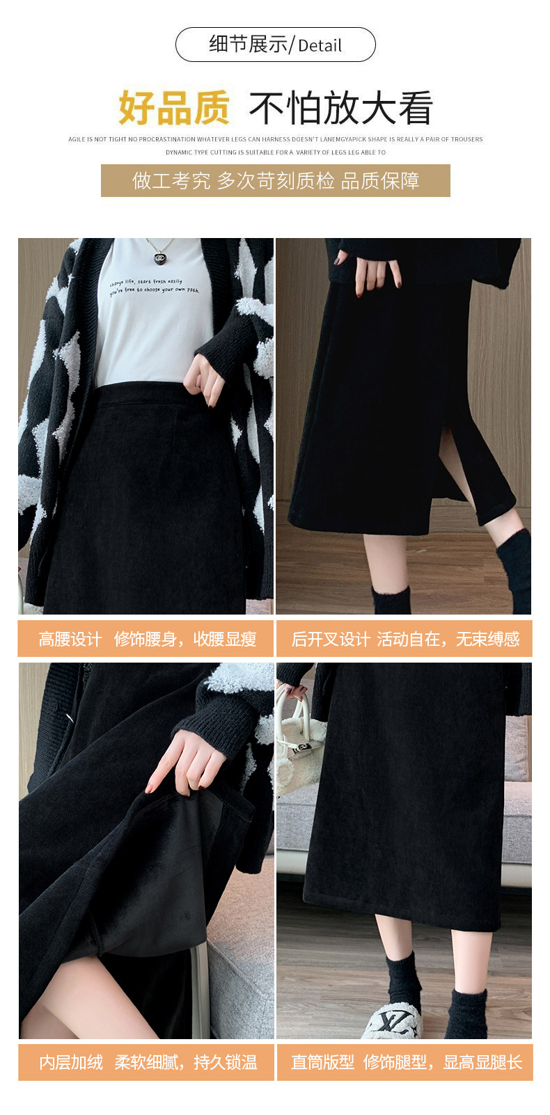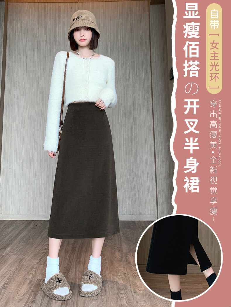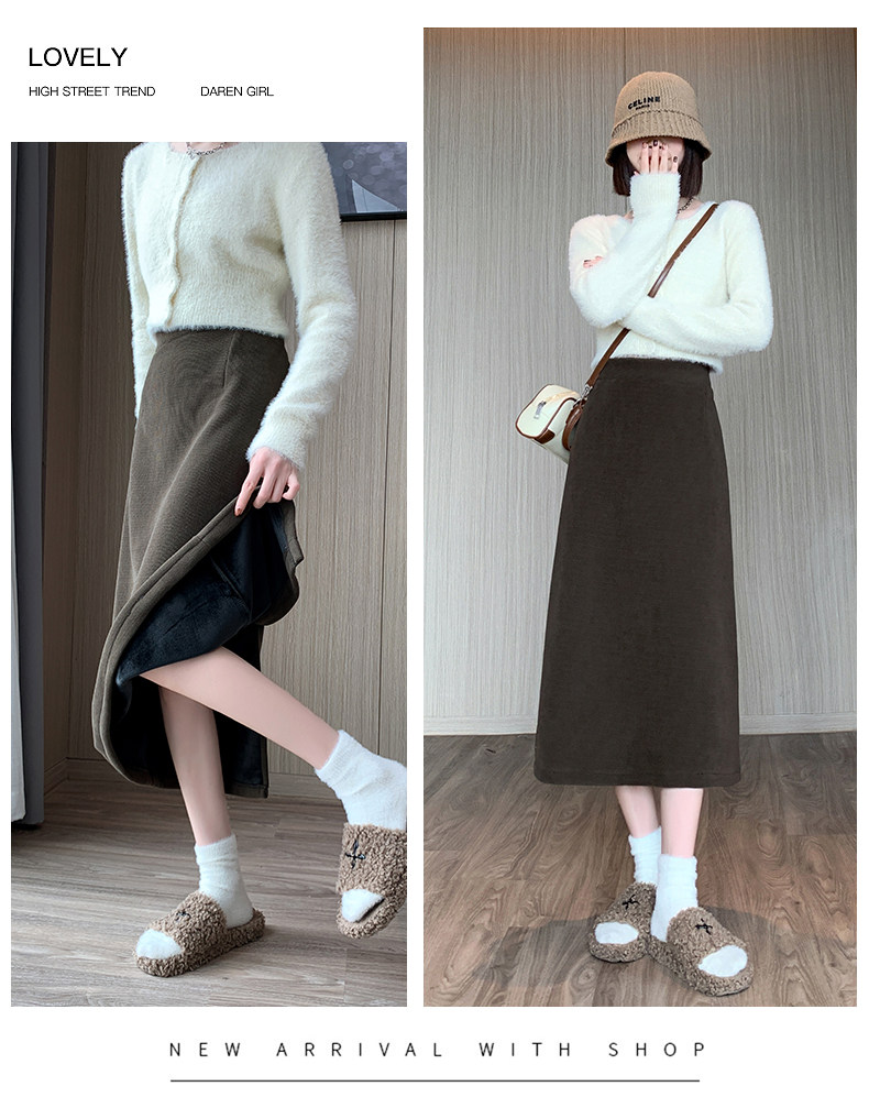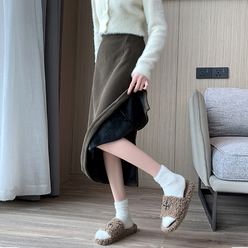 Утепленная демисезонная юбка, шерстяной длинный приталенный свитер, средней длины, А-силуэт