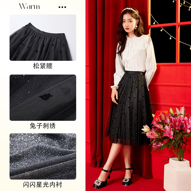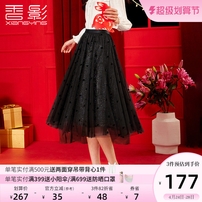 香影 Весенняя цветная юбка, бархатный кролик, новая коллекция, высокая талия, длина миди