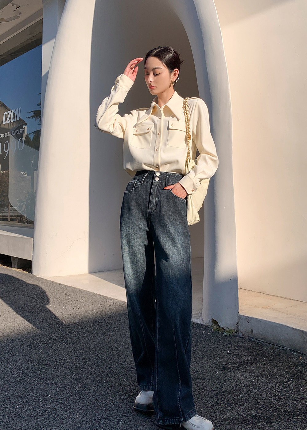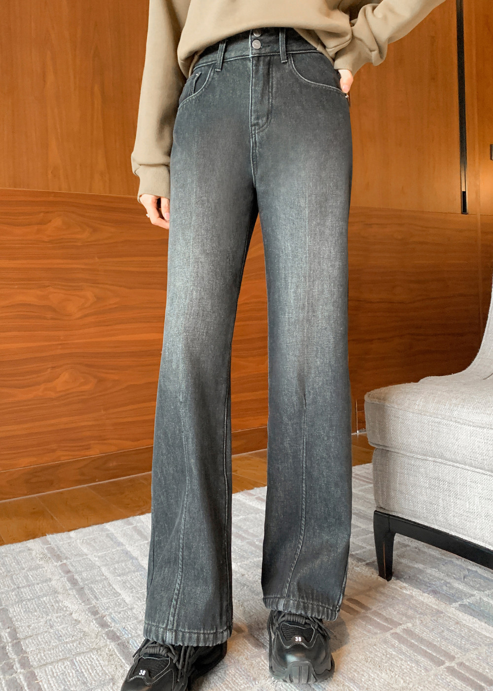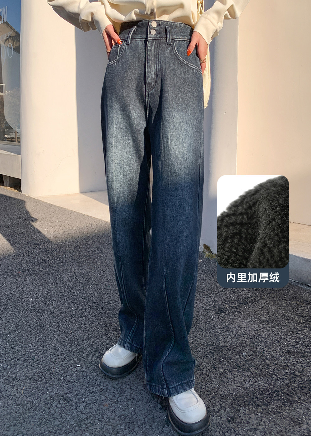 Lieer Lrks "Снежные джинсы" плюс бархатные длинноногие папы с широкологающими джинсами L24Kz8448-b