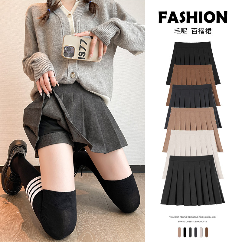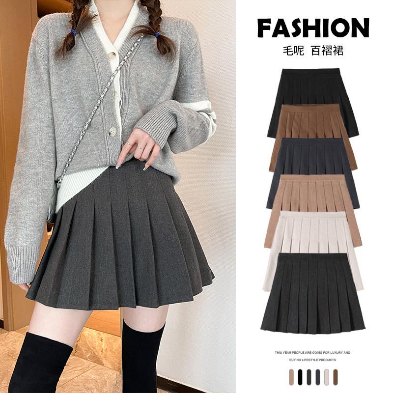 Осенняя юбка в складку, демисезонное защитное белье, шерстяной костюм, мини-юбка, плиссированная юбка, А-силуэт