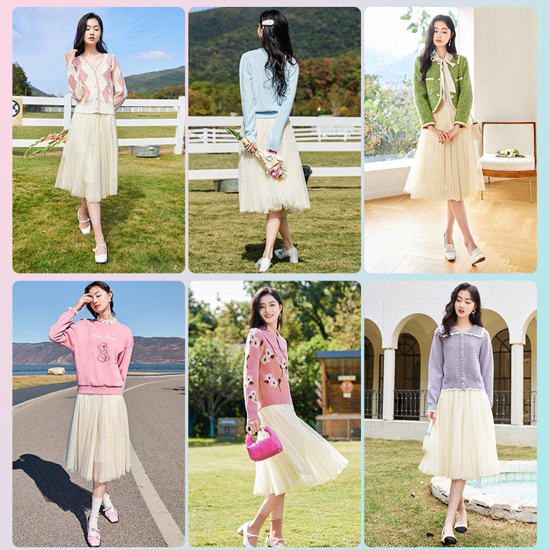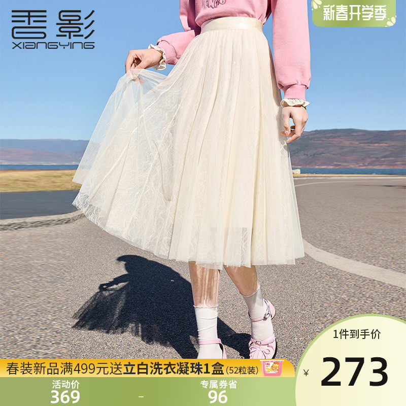 香影 Весенняя юбка, плиссированная юбка, высокая талия