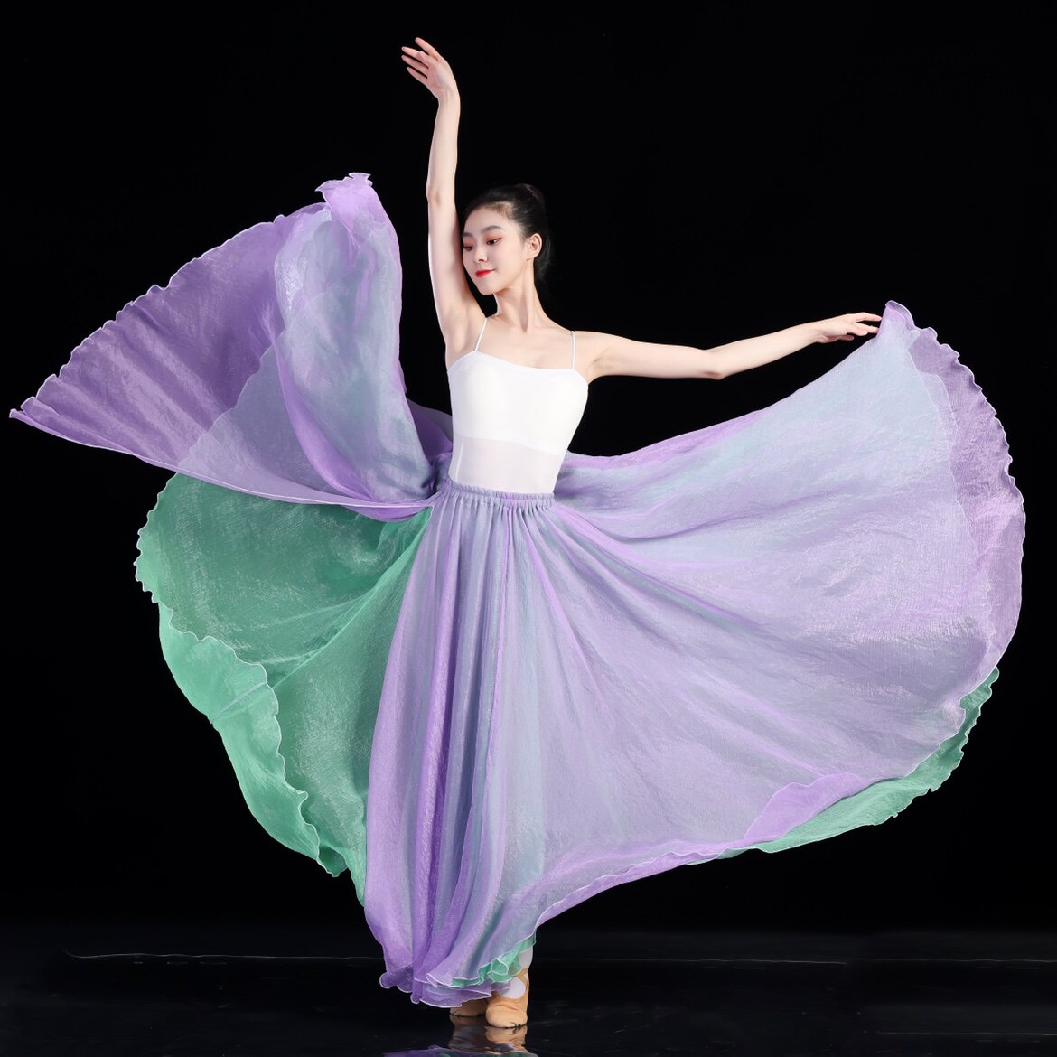 Девять -лежащие старые магазины Три цвета классических танцевальных юбок, национальные ветры, элегантное искусство, 720 градусов с двумя слоями двух -колорная фабричная юбка танцевальная юбка