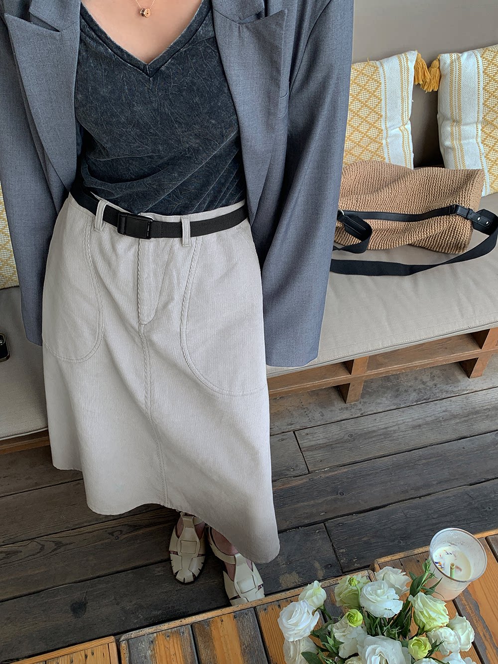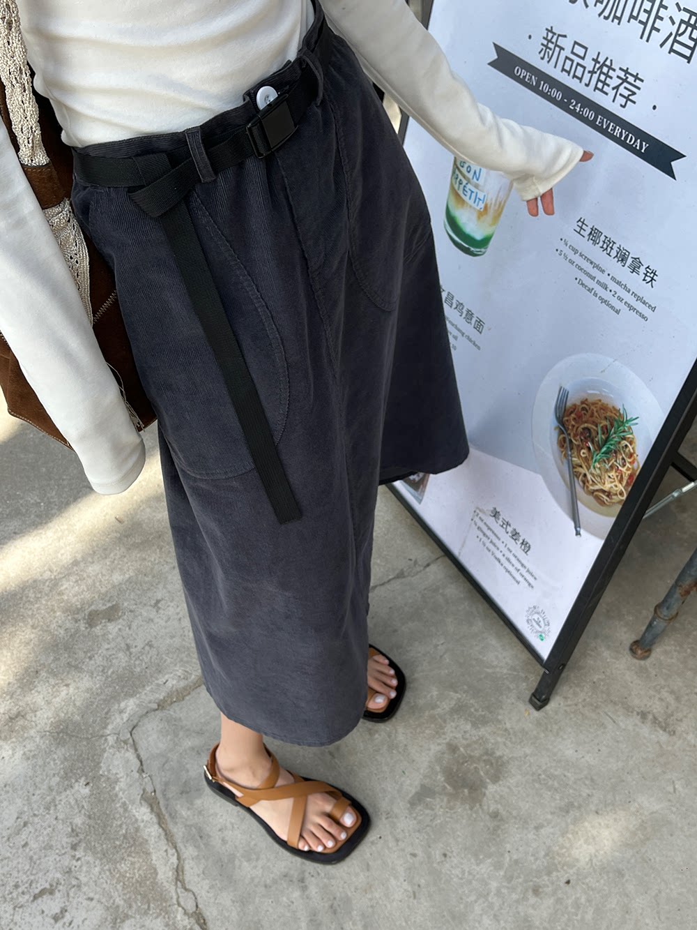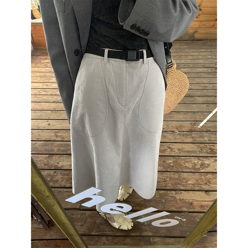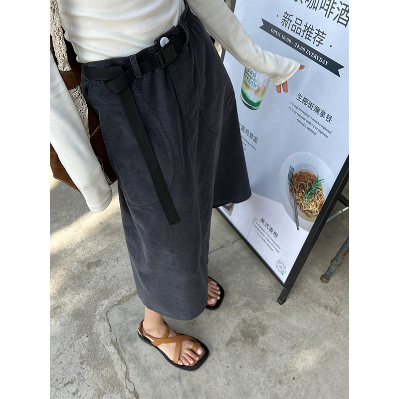 Дорожная вельветовая весенняя юбка, модный ремень, коллекция 2023, городской стиль, А-силуэт