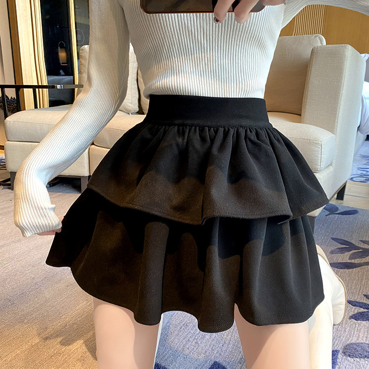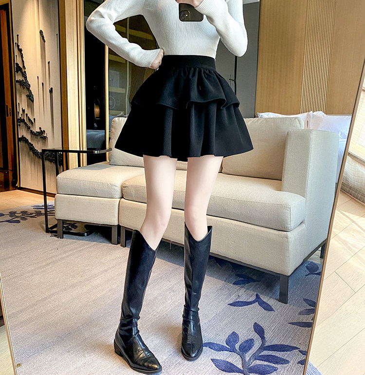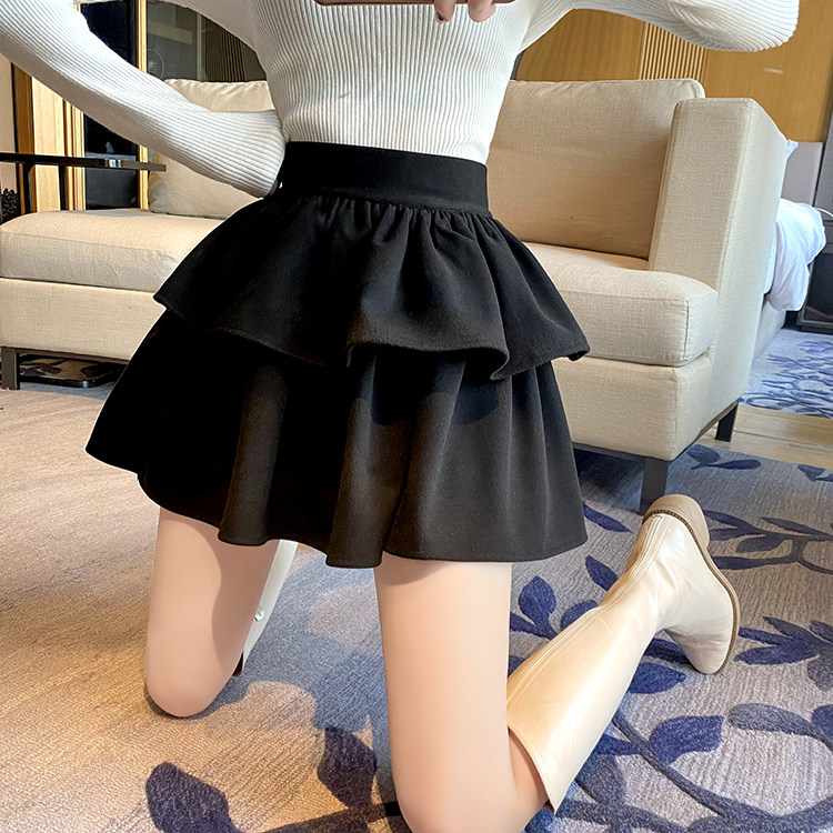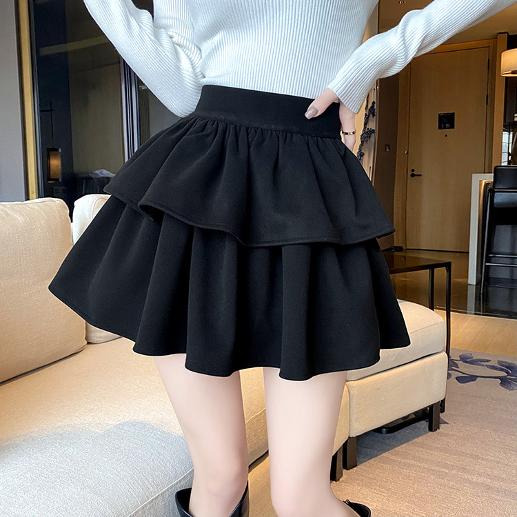 Черная шерстяная весенняя юбка, мини-юбка, большой размер, высокая талия, подходит для подростков, А-силуэт