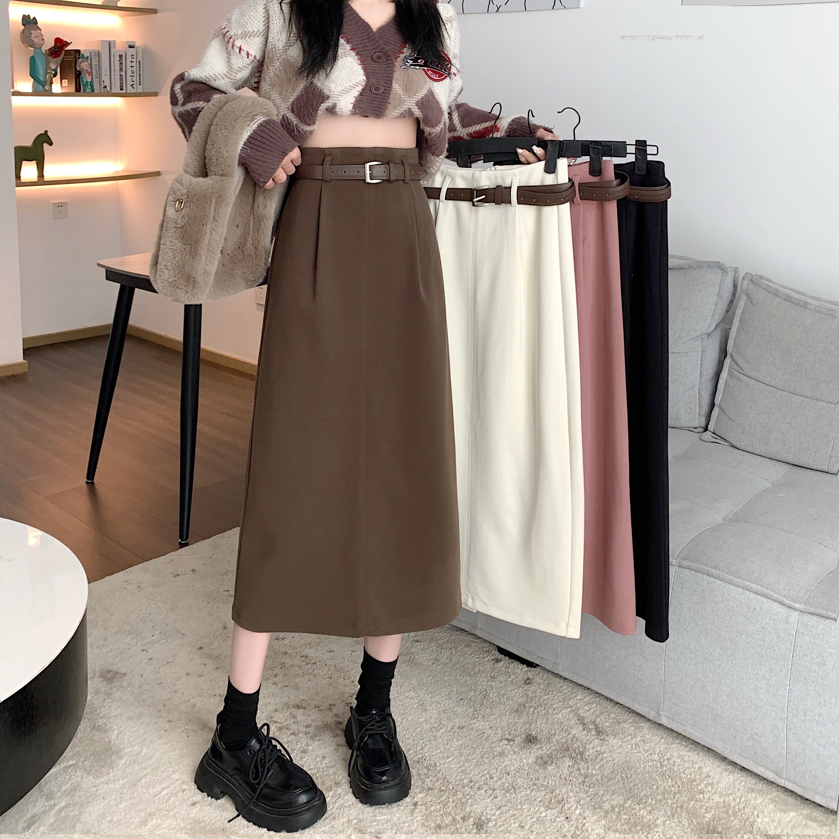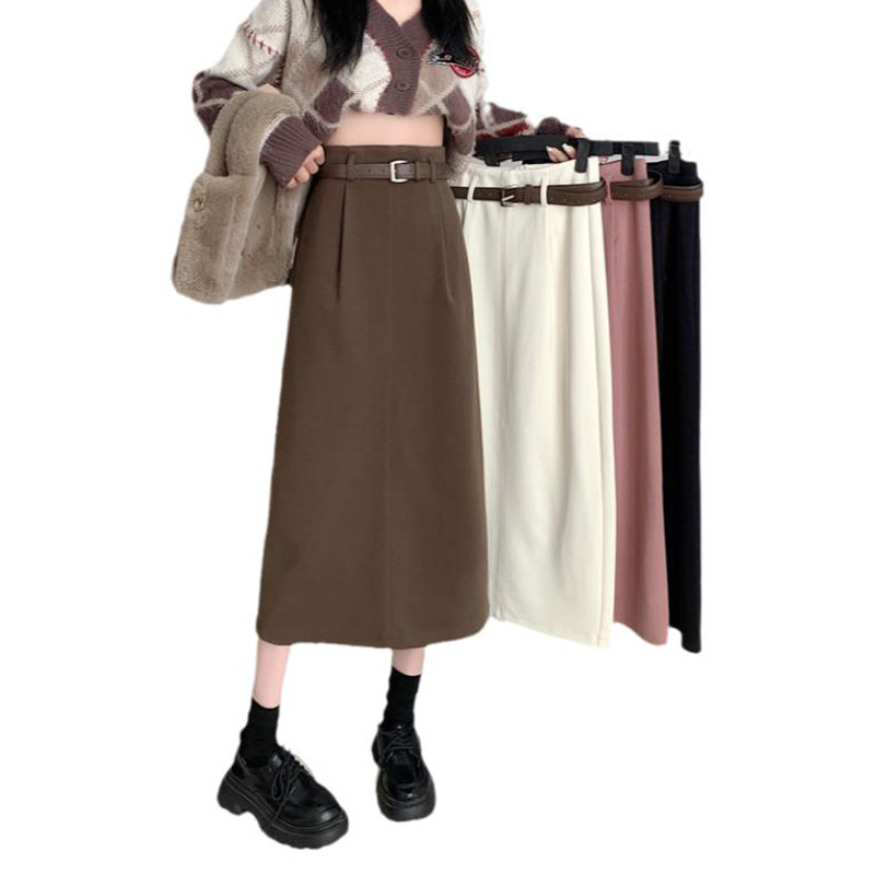 Зимняя цветная шерстяная демисезонная длинная длинная юбка, высокая талия, А-силуэт, подходит для подростков, длина макси