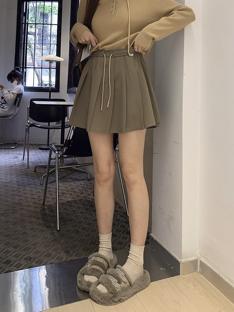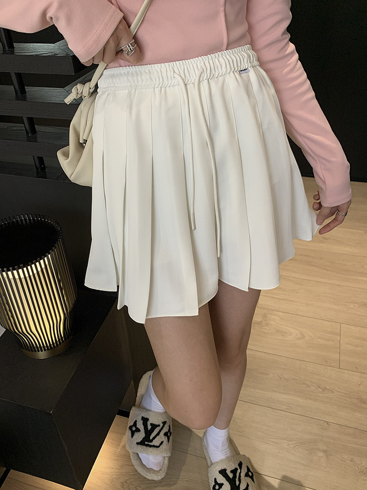 Весенняя юбка в складку, мини-юбка, А-силуэт, 2024 года, высокая талия, на шнурках