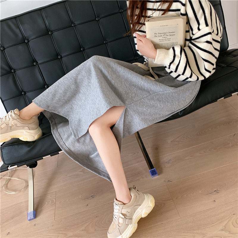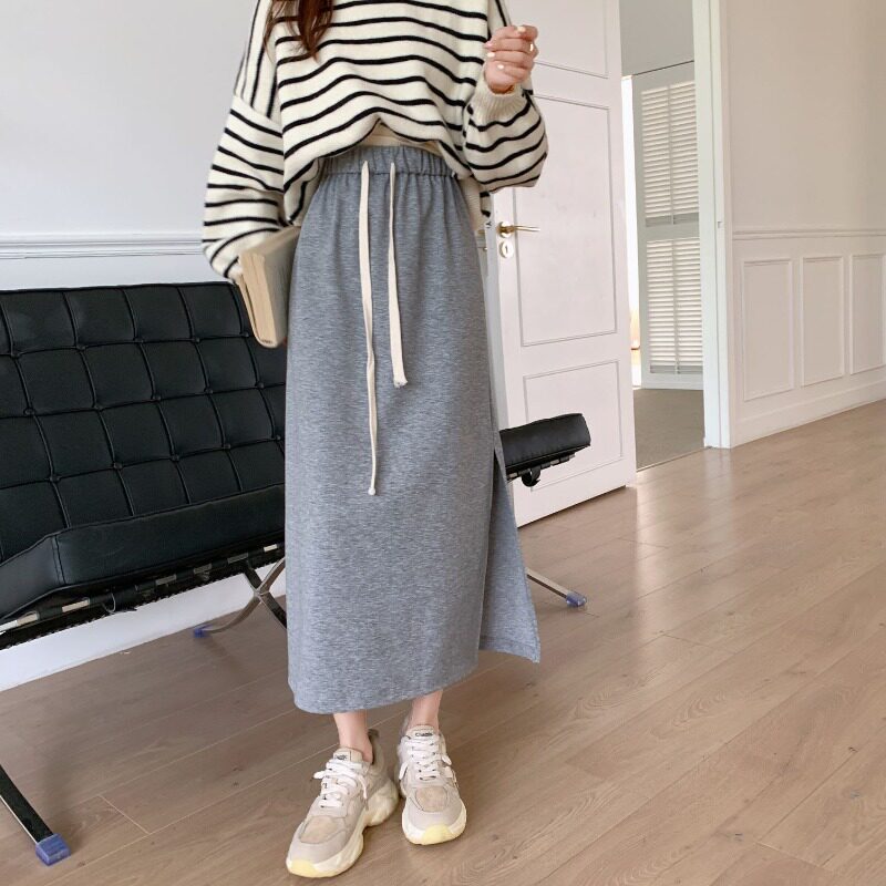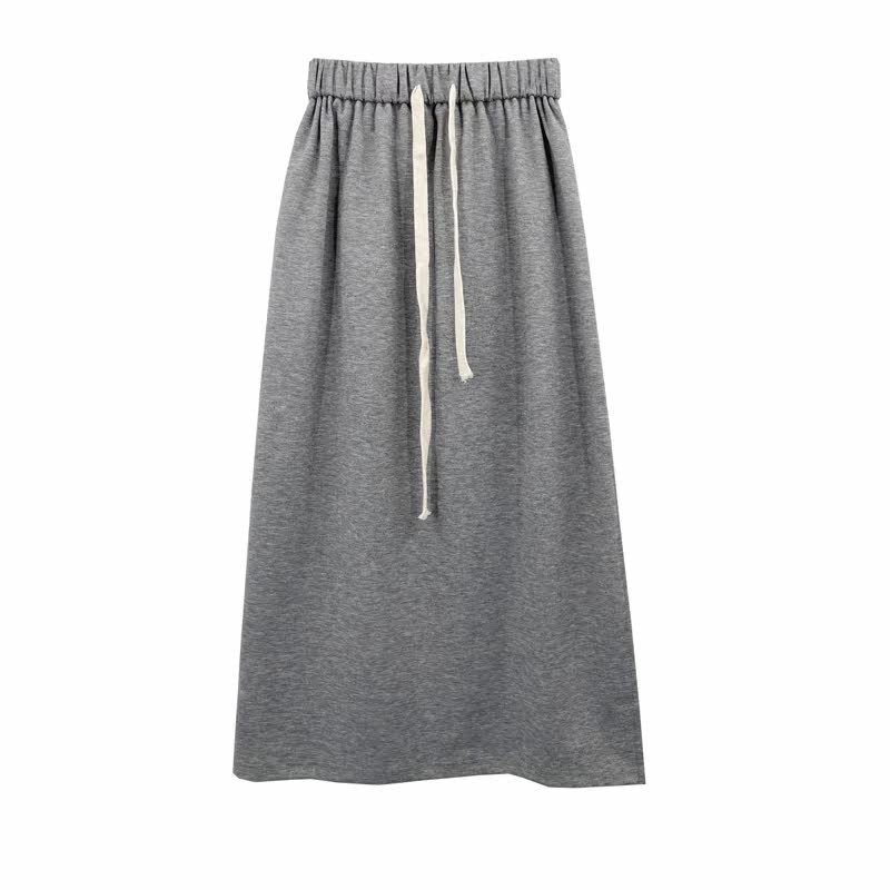 Длинная черная осенняя приталенная длинная юбка, коллекция 2023, на шнурках, средней длины, А-силуэт, свободный прямой крой