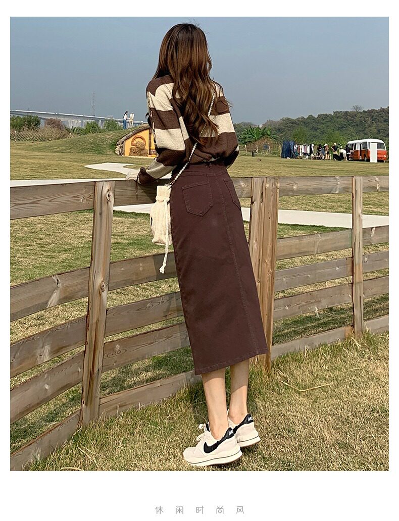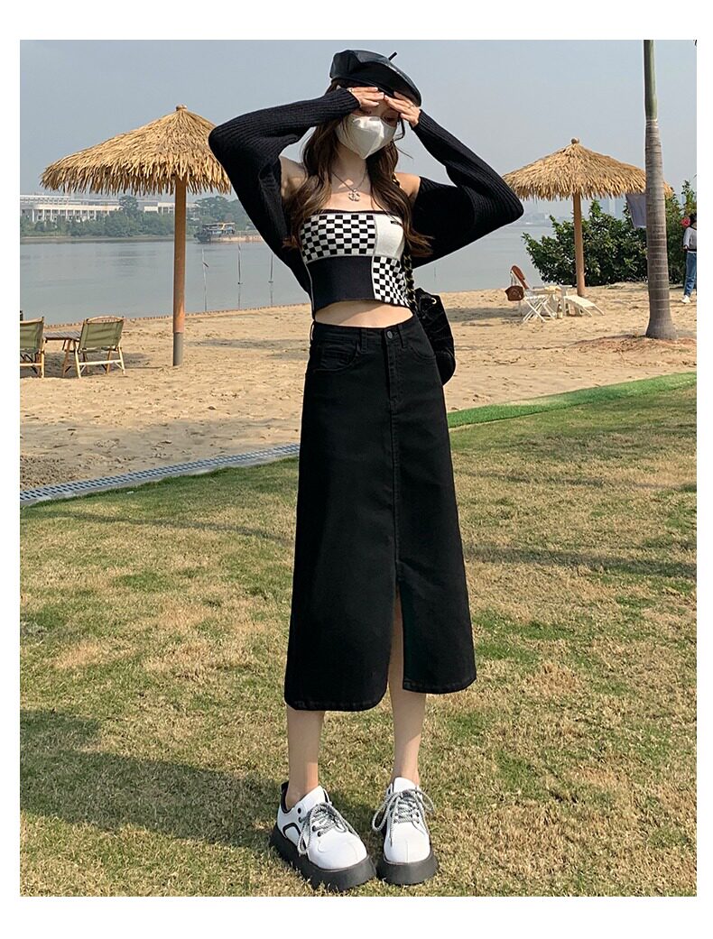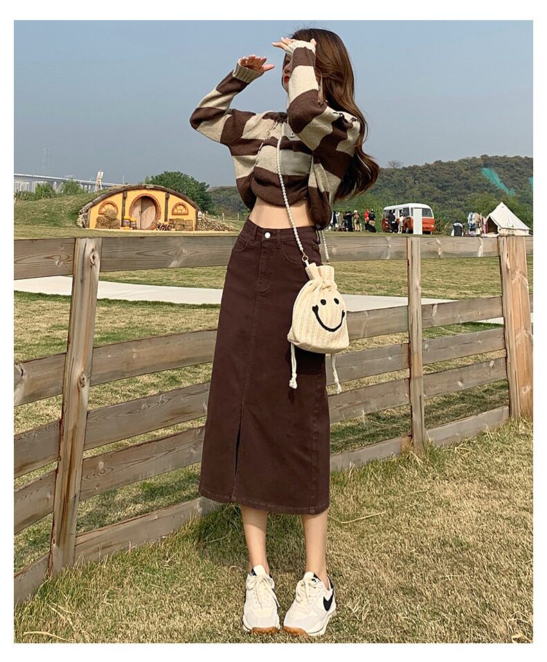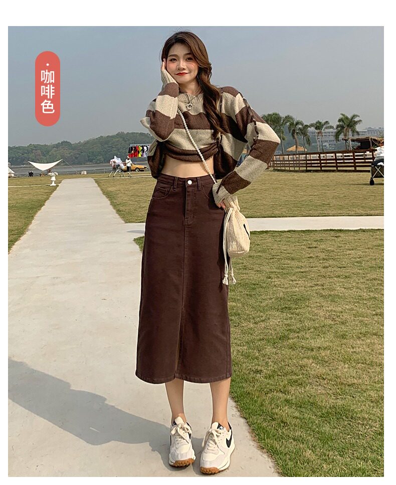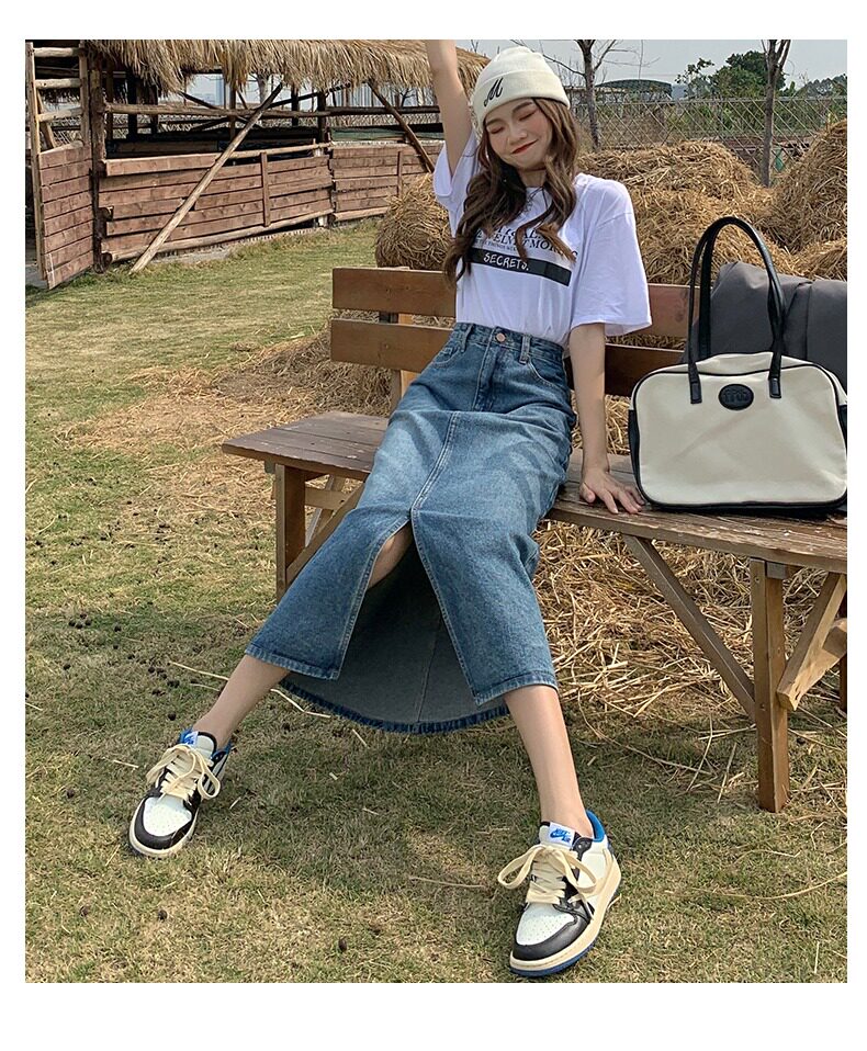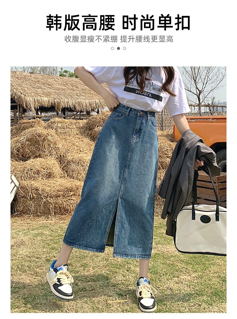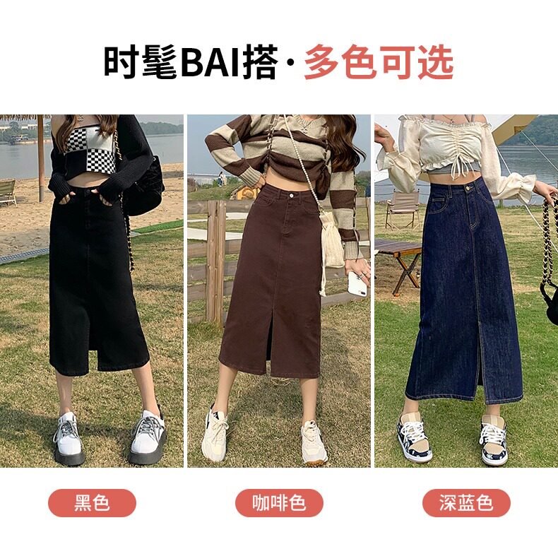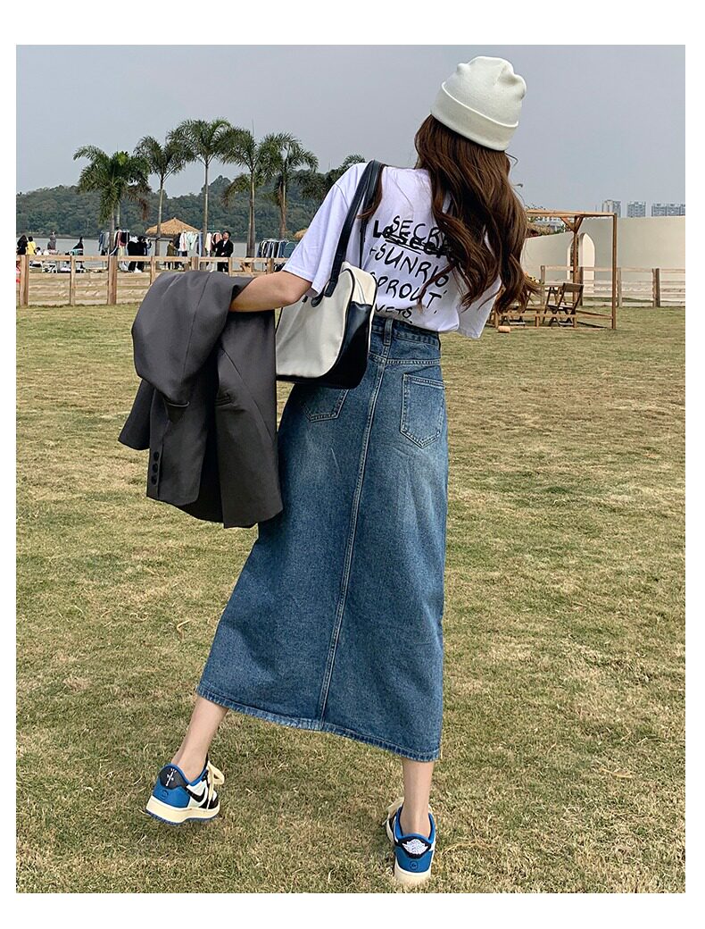 Осенняя длинная джинсовая юбка, высокая талия, А-силуэт, с акцентом на бедрах