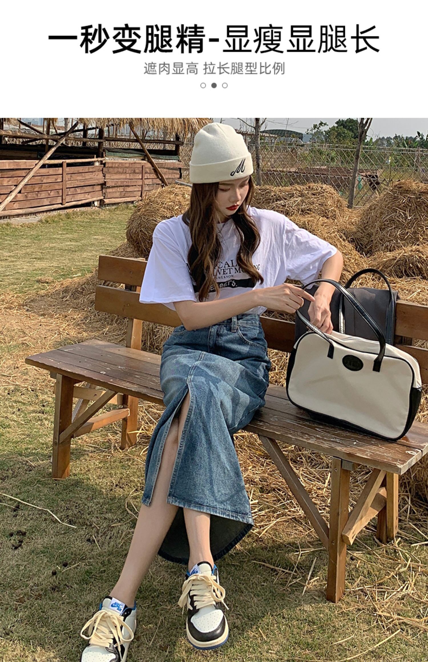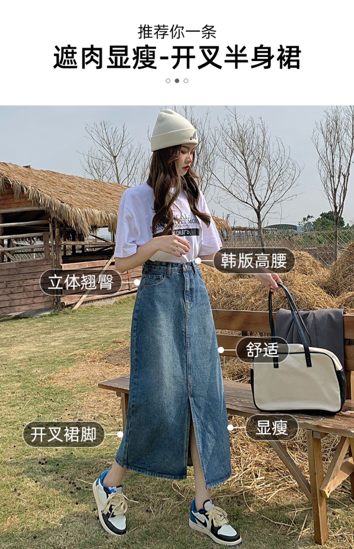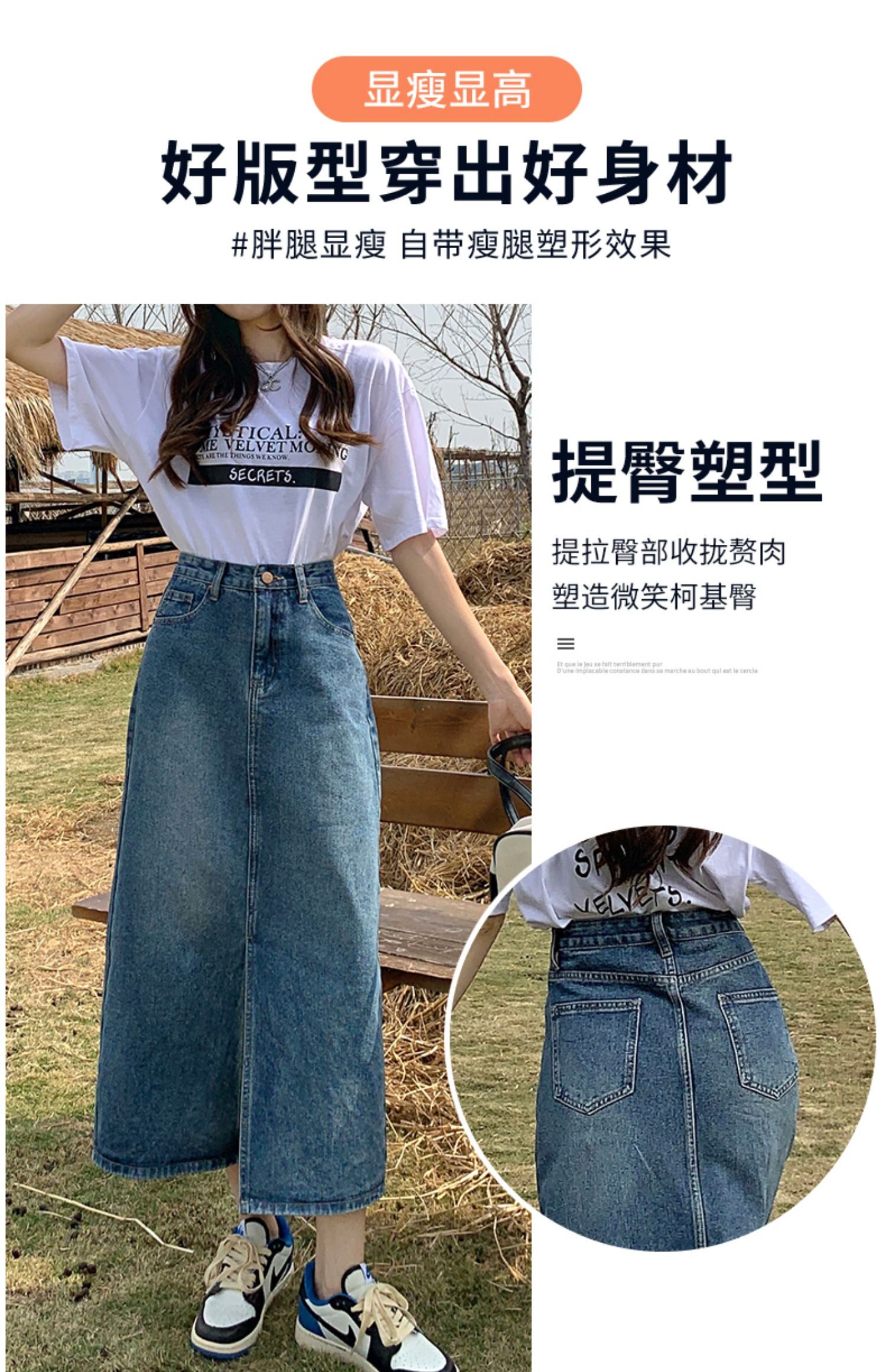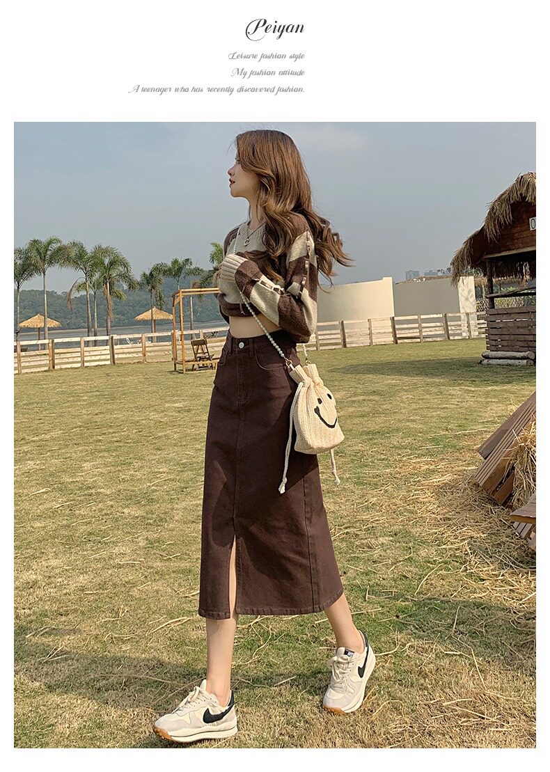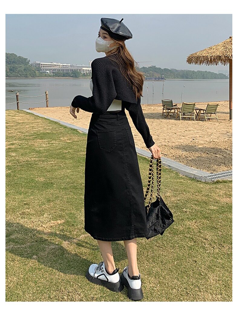 Осенняя длинная джинсовая юбка, высокая талия, А-силуэт, с акцентом на бедрах