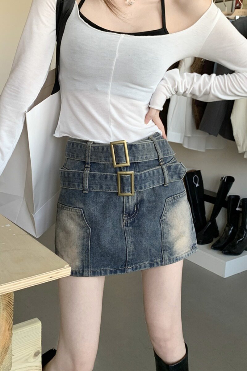 Универсальное защитное белье, джинсовая юбка, мини-юбка, подходит для подростков, свободный прямой крой, стройный силуэт