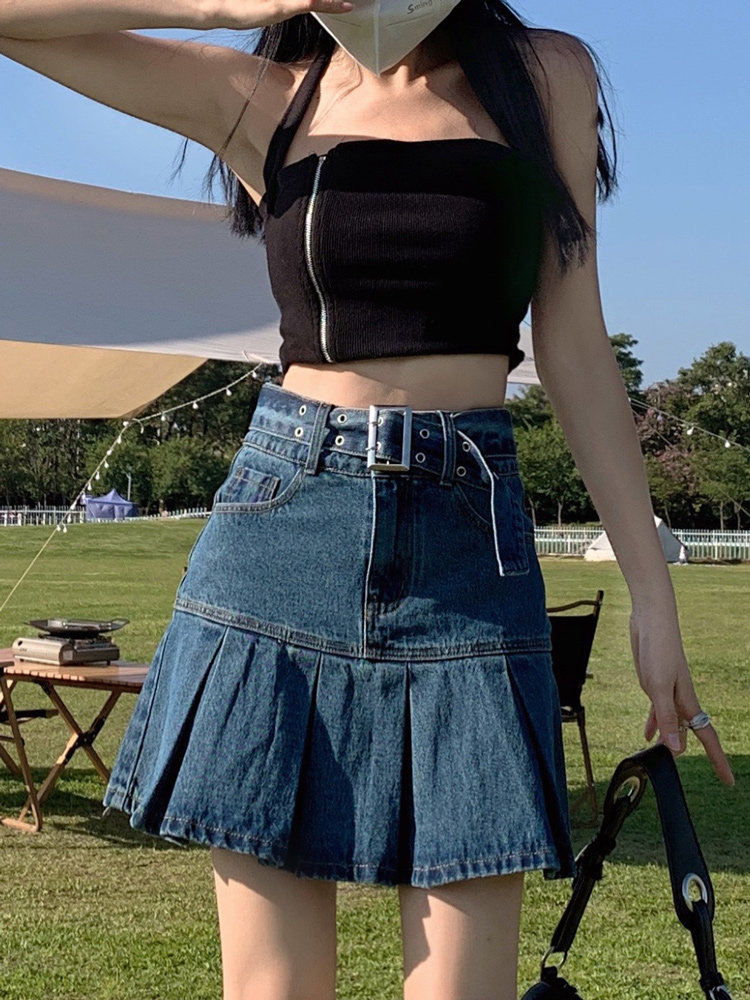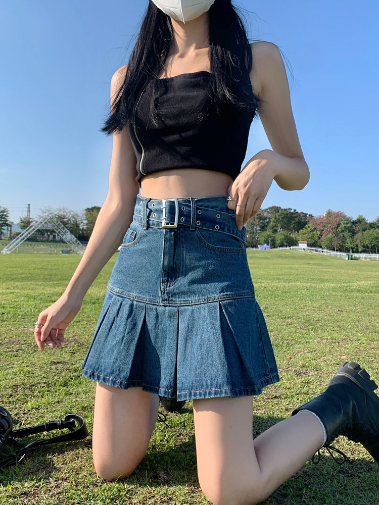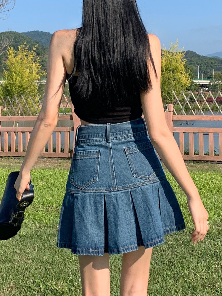 Осенняя джинсовая юбка, юбка в складку, мини-юбка, высокая талия, рыбий хвост, А-силуэт, с акцентом на бедрах