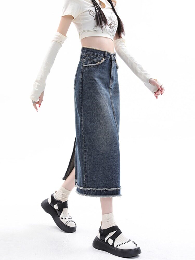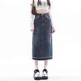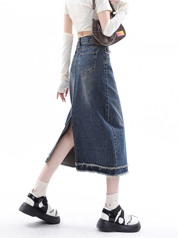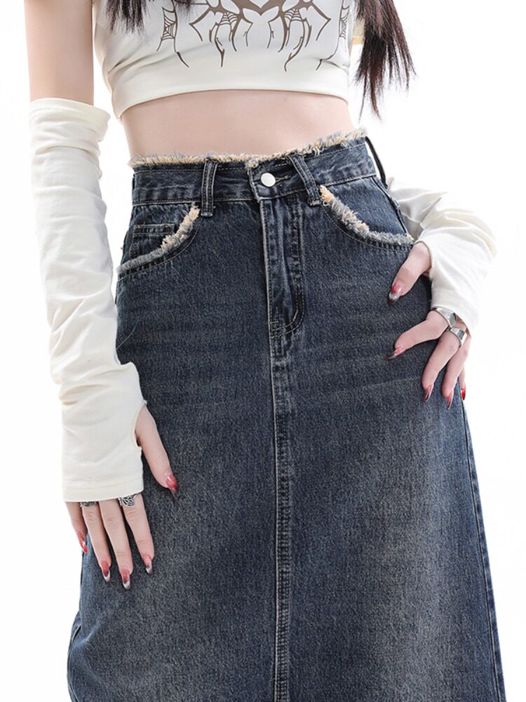 Весенняя длинная ретро джинсовая юбка, средней длины, большой размер, А-силуэт, с акцентом на бедрах
