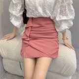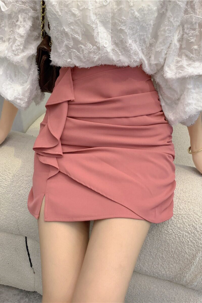 Розовая цветная осенняя дизайнерская юбка, мини-юбка, высокая талия, А-силуэт, тренд сезона, с акцентом на бедрах