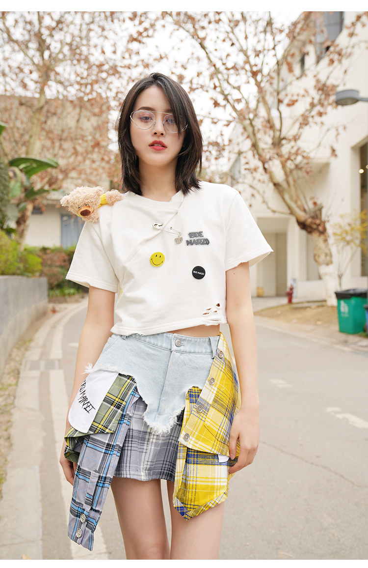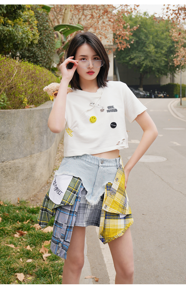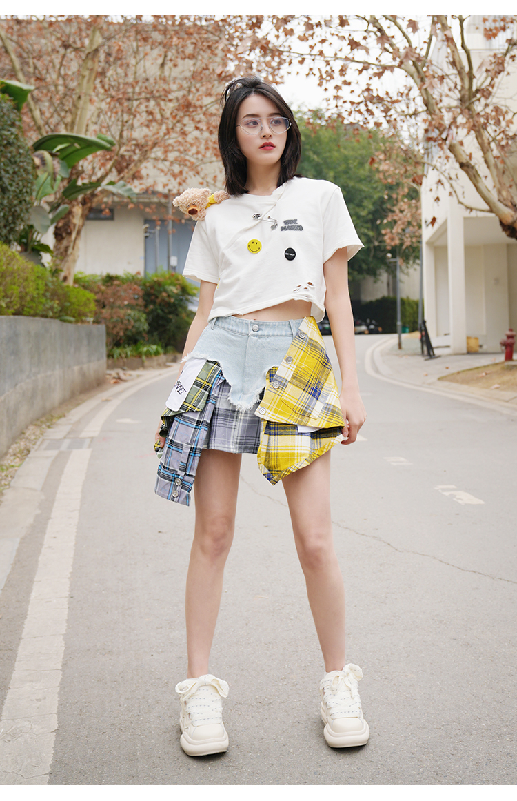 Чжао Чжаоя, та же половина юбка Странная рынок нерегулярная строчка горячая девушка юбка для джинсовой юбки женская юбка