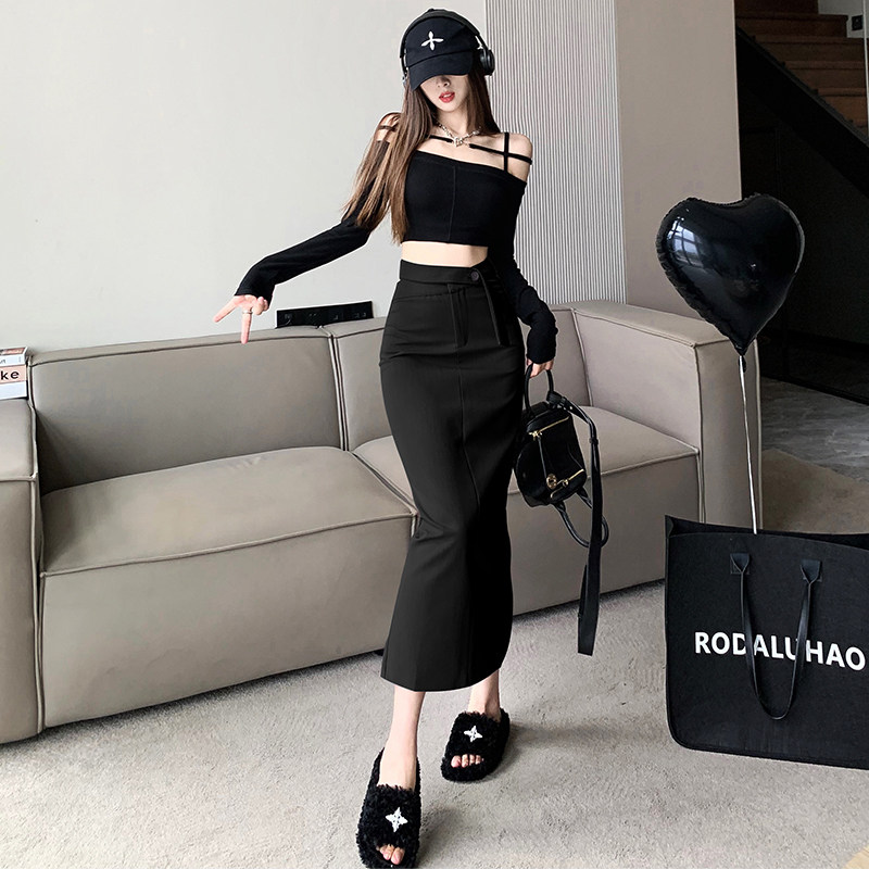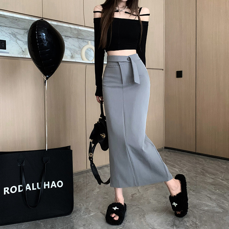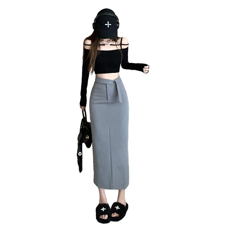 Весенний пиджак классического кроя, дизайнерская приталенная длинная юбка, тренд сезона, в корейском стиле, яркий броский стиль, с акцентом на бедрах