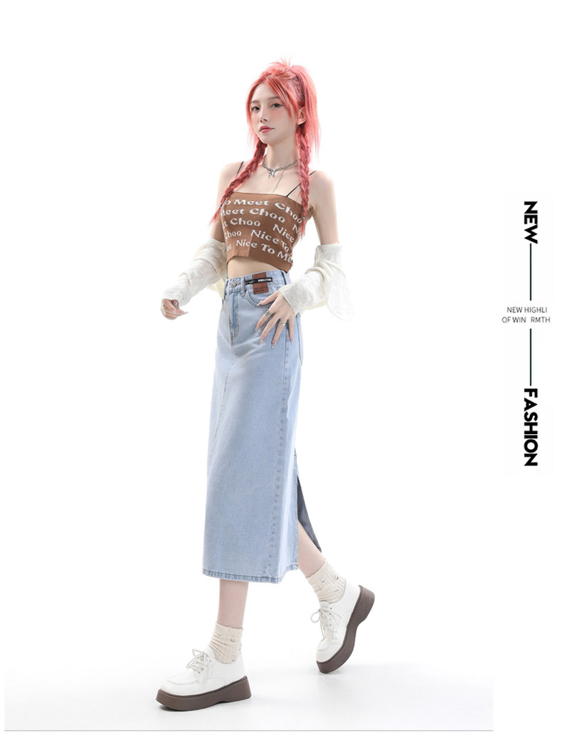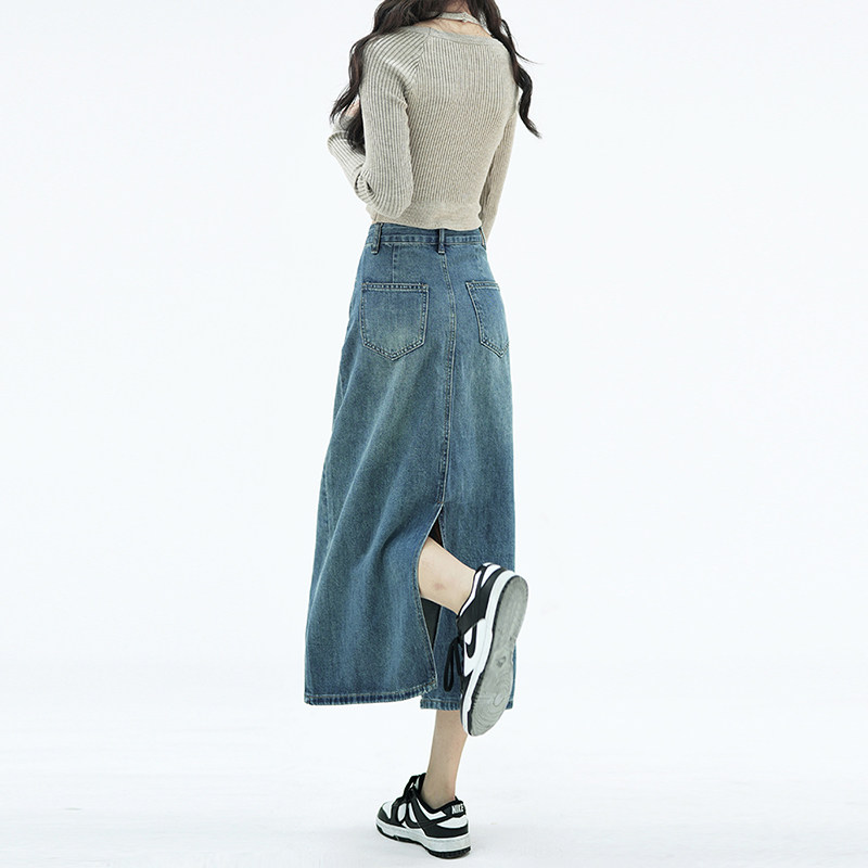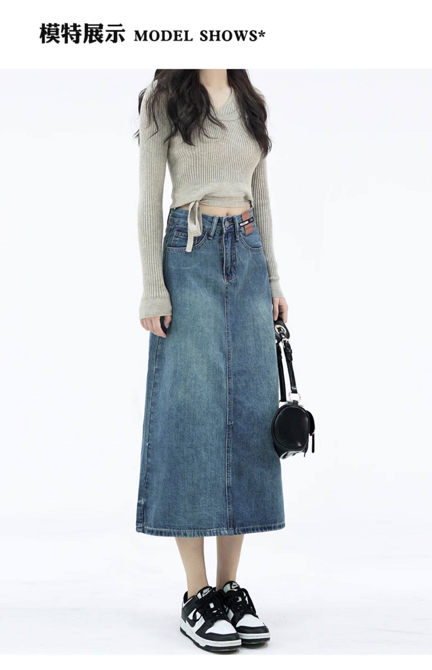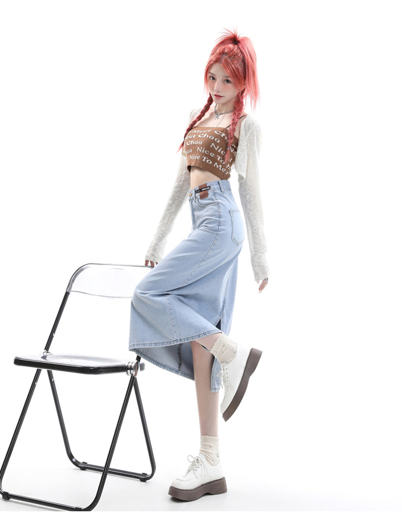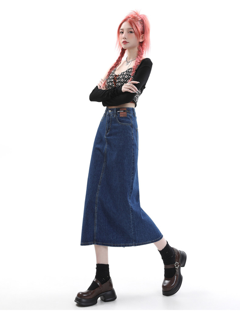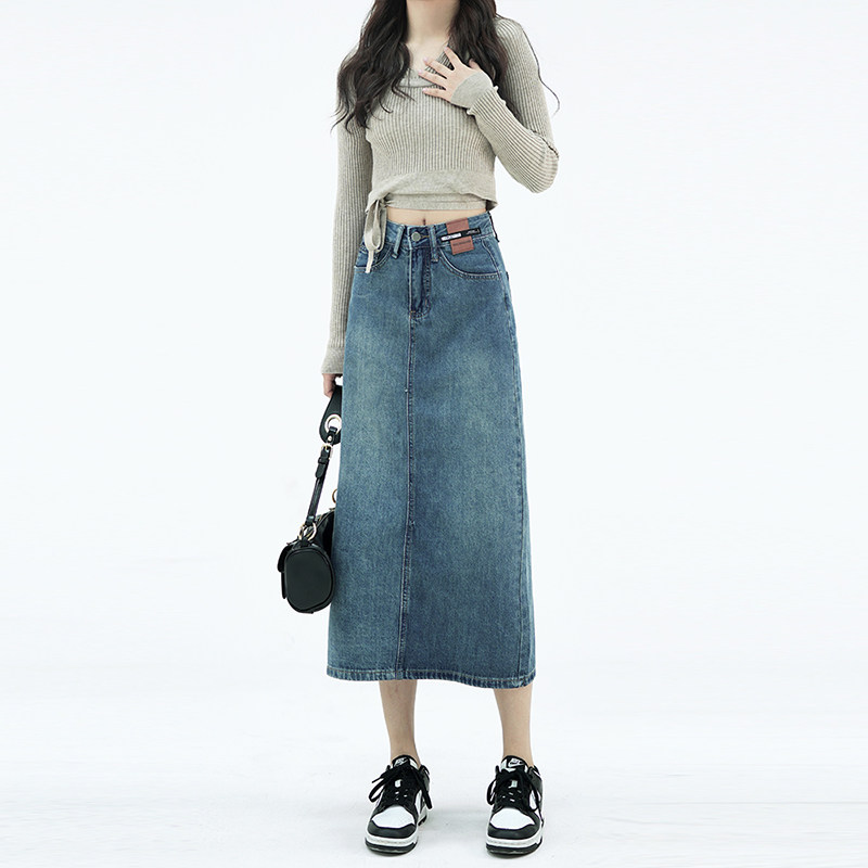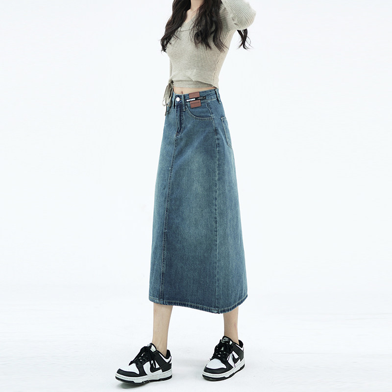 Летняя тонкая приталенная длинная джинсовая юбка, коллекция 2023, высокая талия, А-силуэт