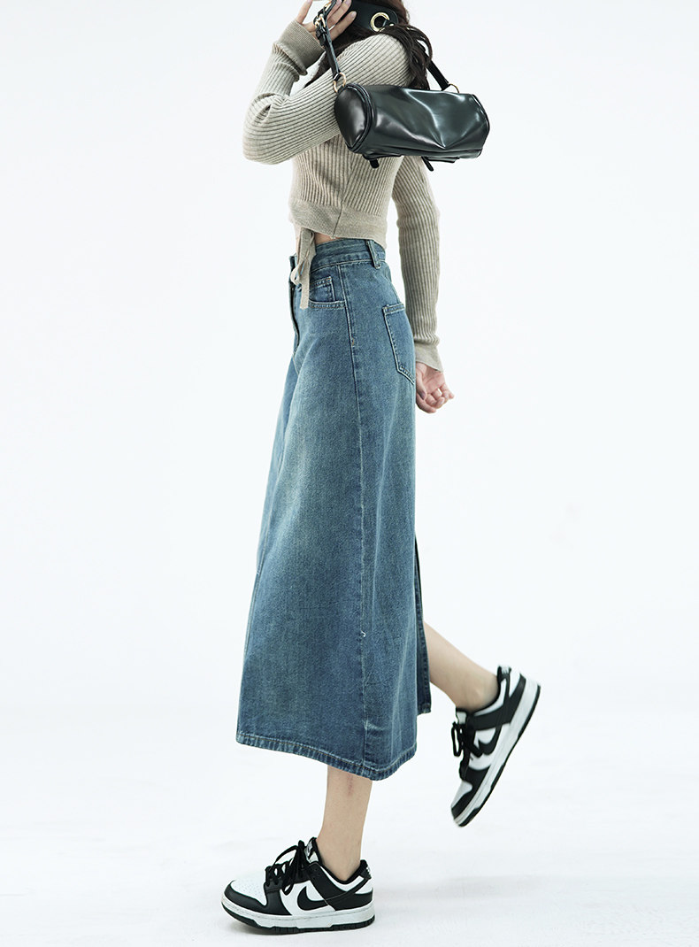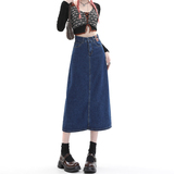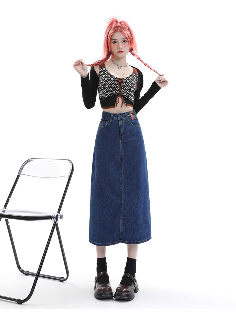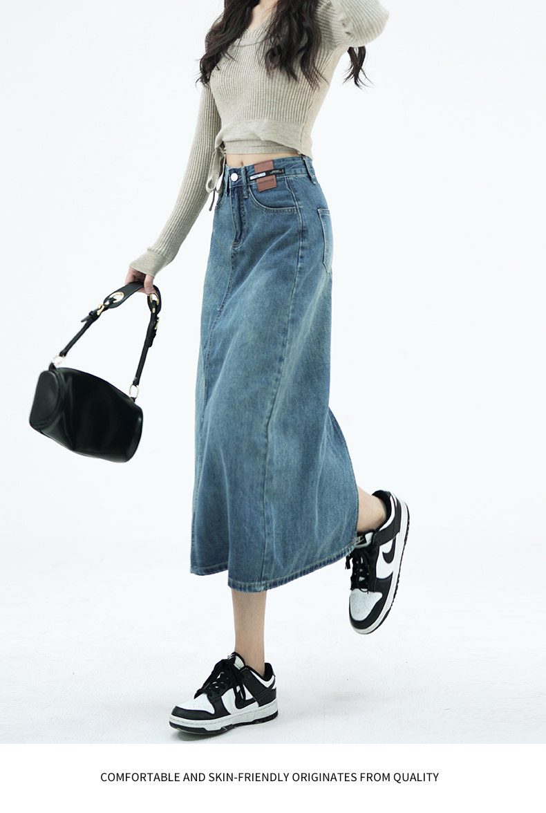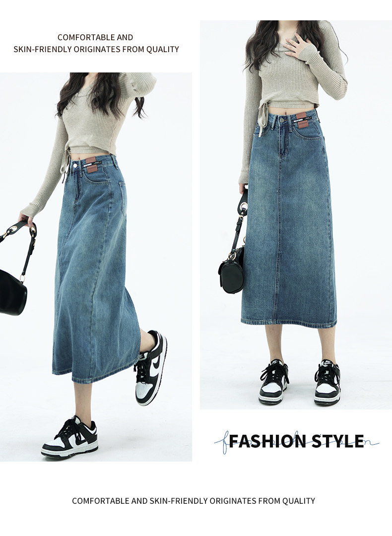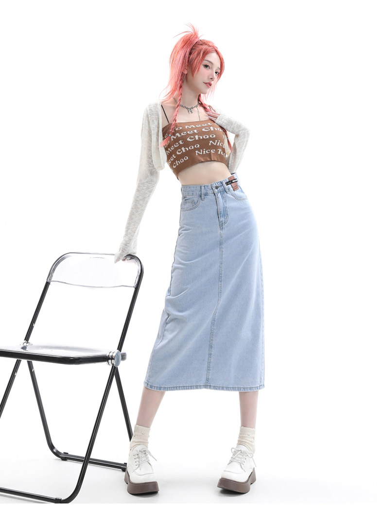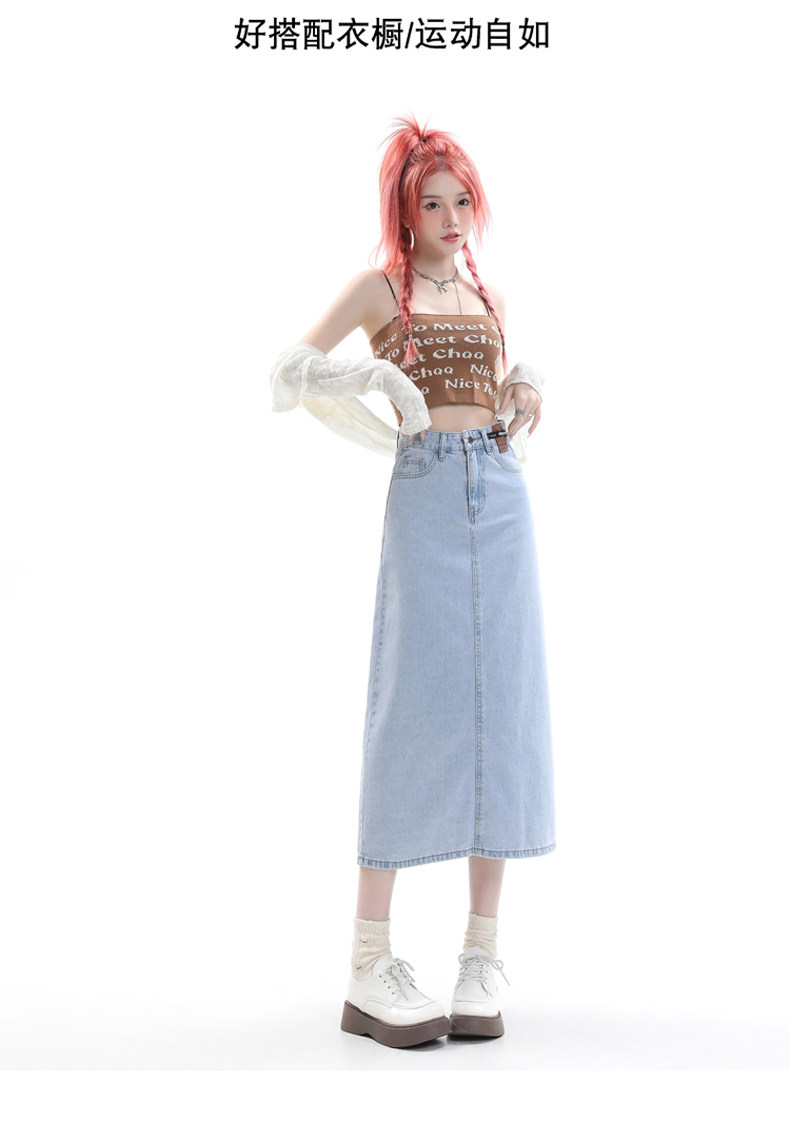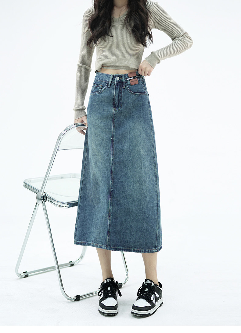 Летняя тонкая приталенная длинная джинсовая юбка, коллекция 2023, высокая талия, А-силуэт