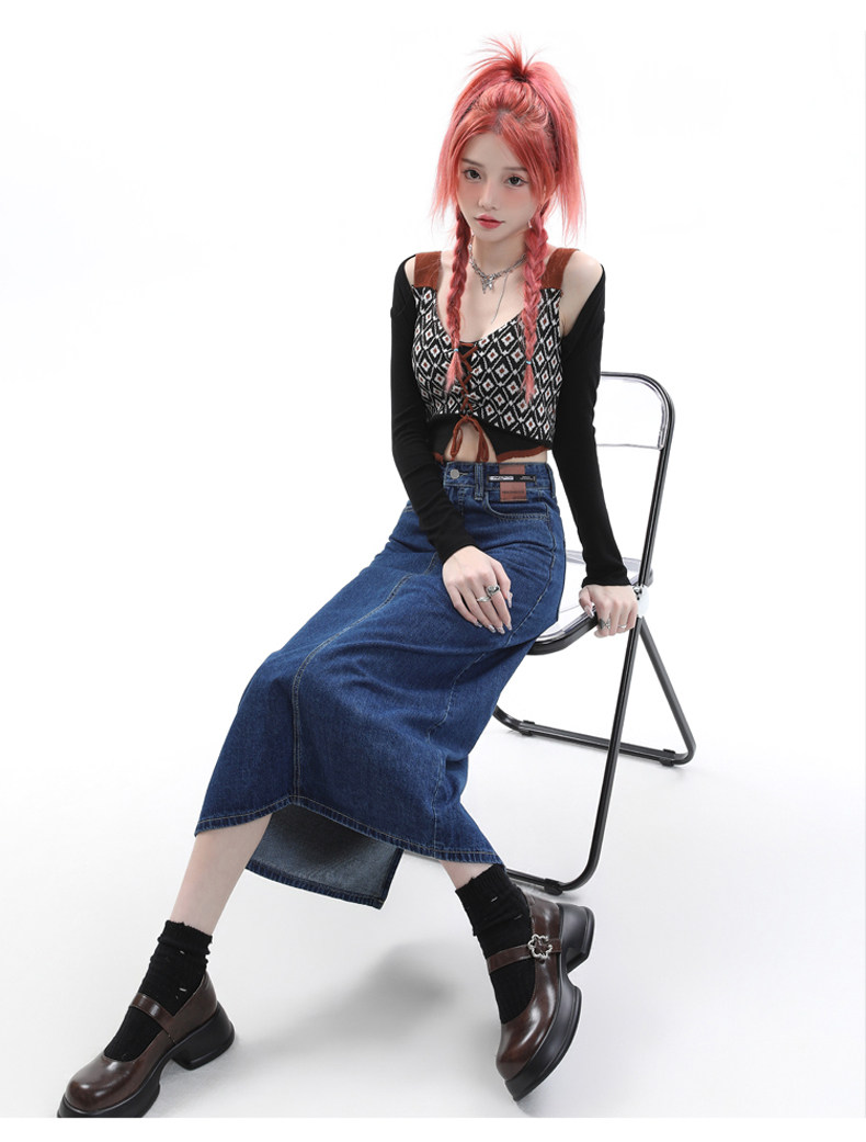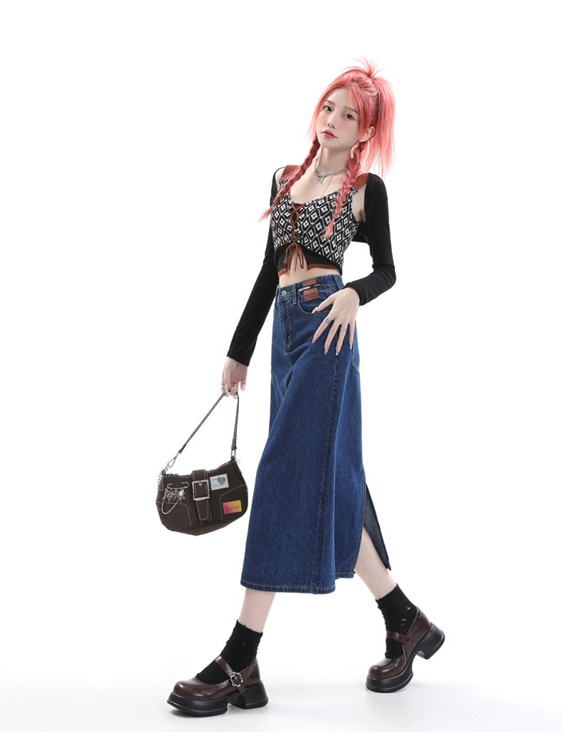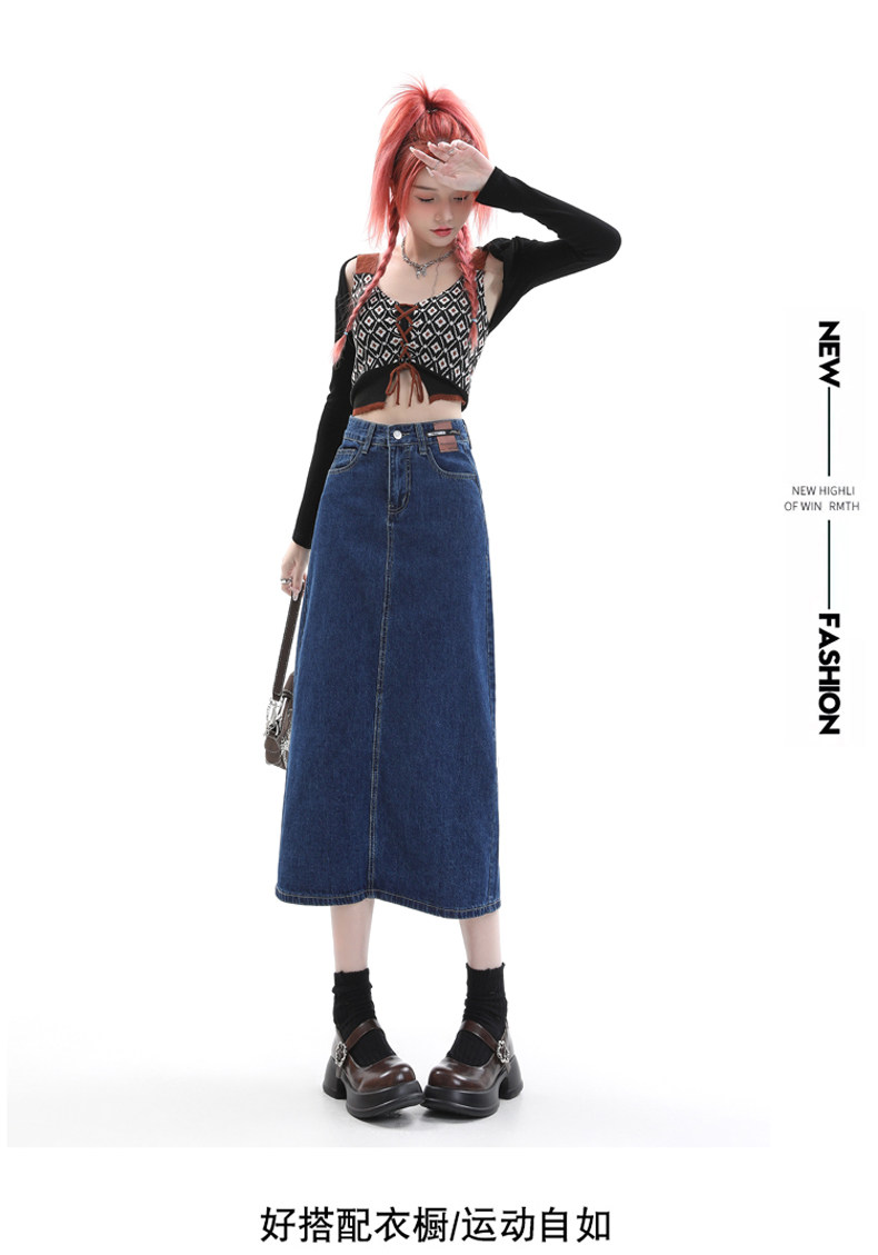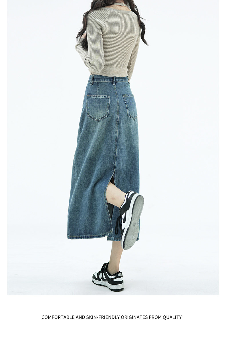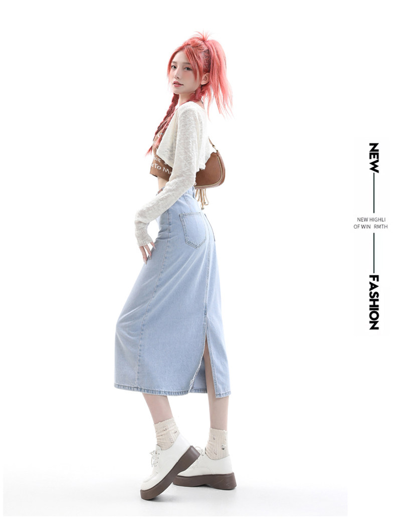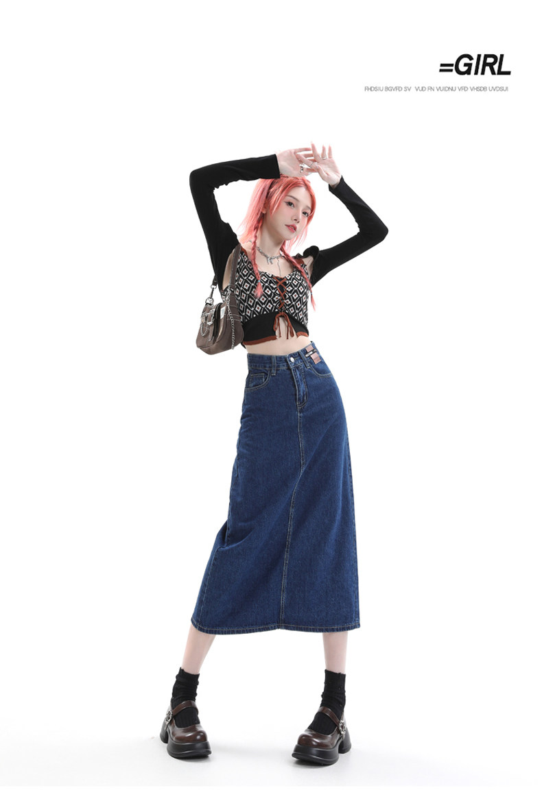 Летняя тонкая приталенная длинная джинсовая юбка, коллекция 2023, высокая талия, А-силуэт