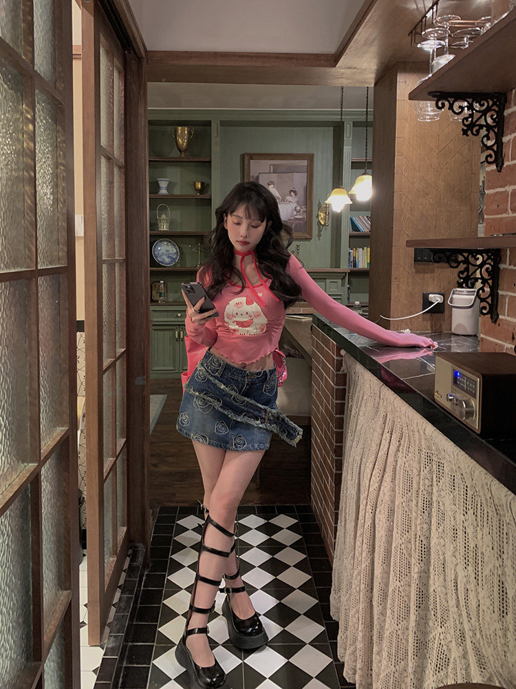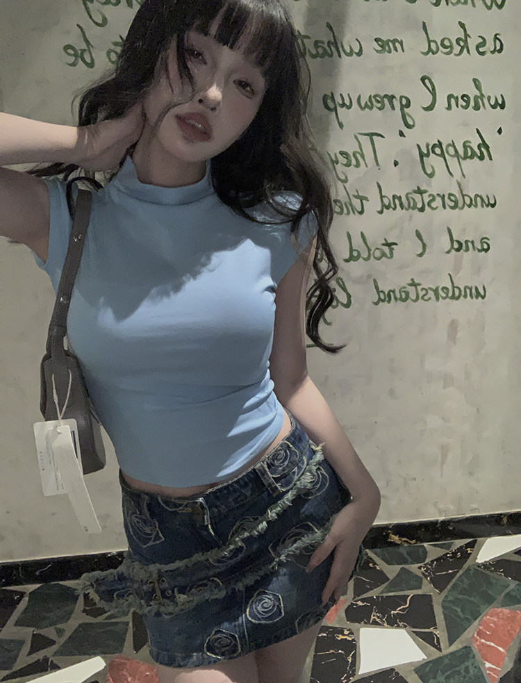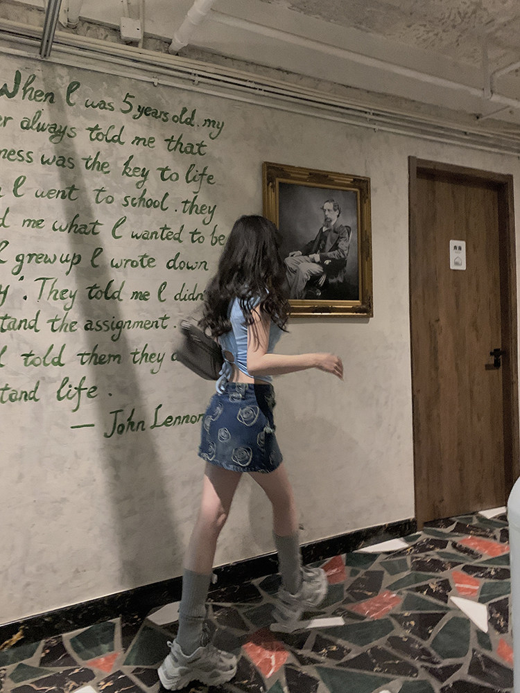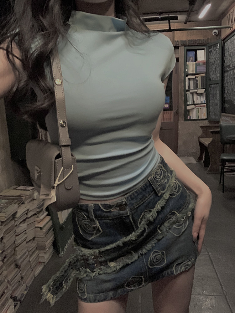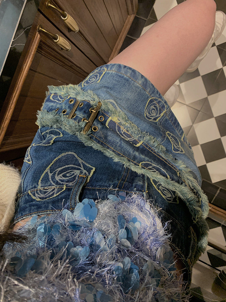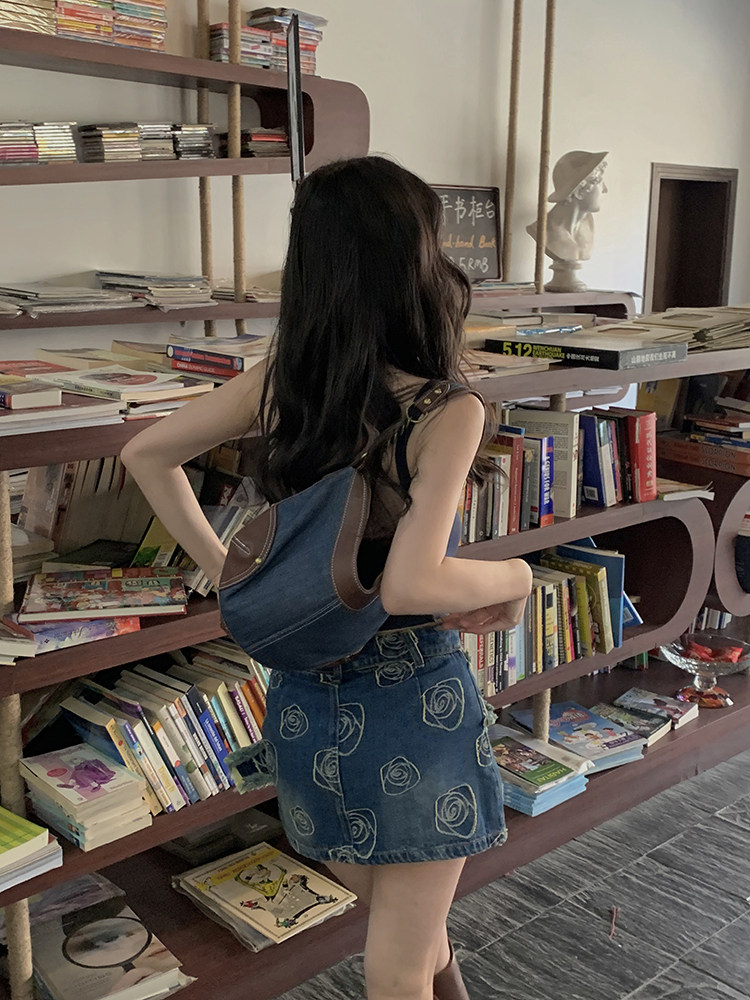 Ретро приталенная джинсовая юбка, сумка, мини-юбка, с акцентом на бедрах