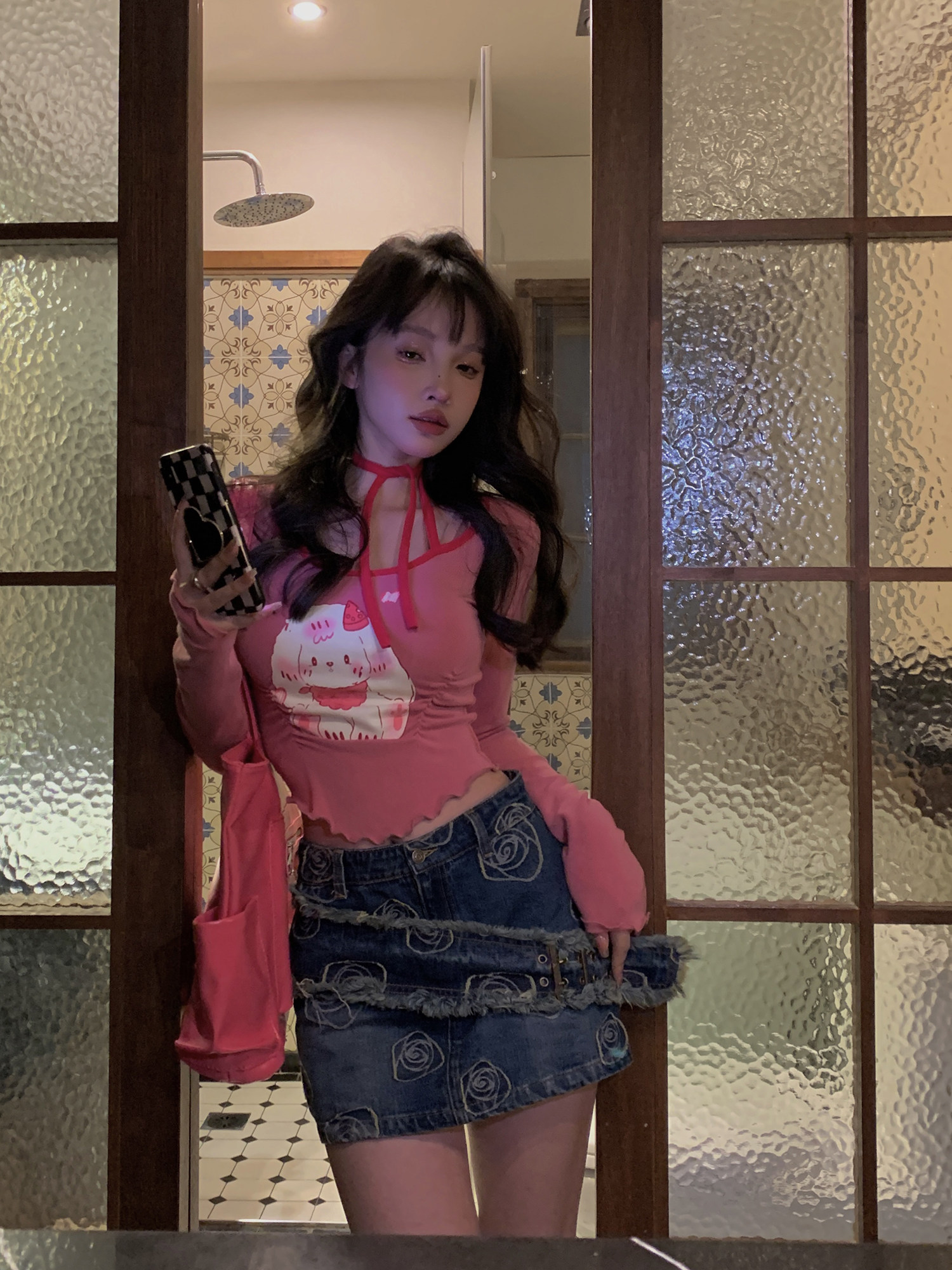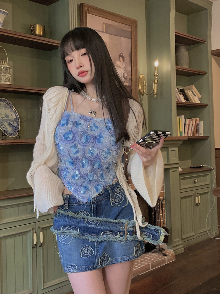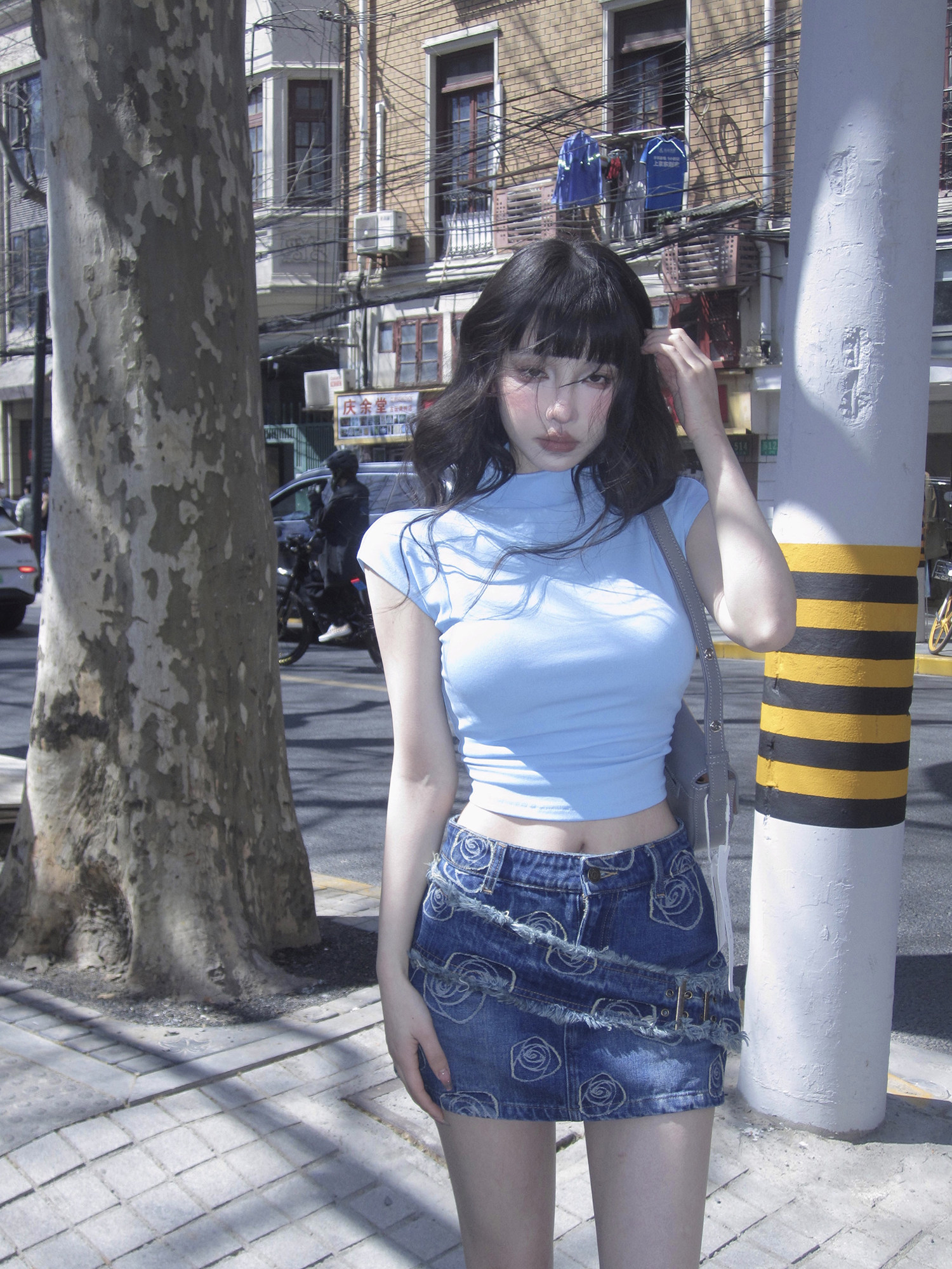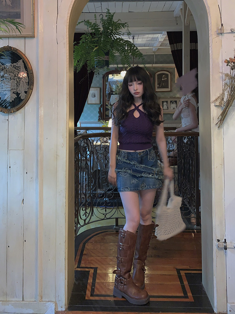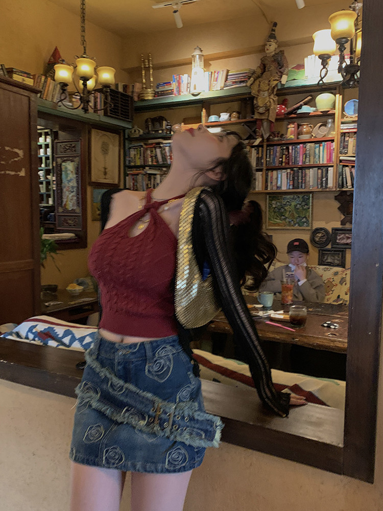 Ретро приталенная джинсовая юбка, сумка, мини-юбка, с акцентом на бедрах
