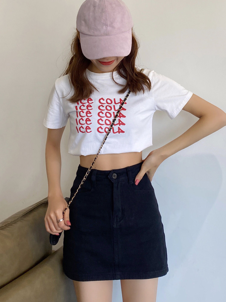 Черная цветная летняя короткая джинсовая юбка, высокая талия, с акцентом на бедрах, облегающий крой