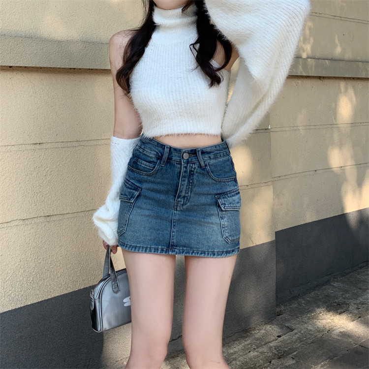 Ретро джинсовая юбка, приталенная летняя одежда, в американском стиле, высокая талия, с акцентом на бедрах, облегающий крой