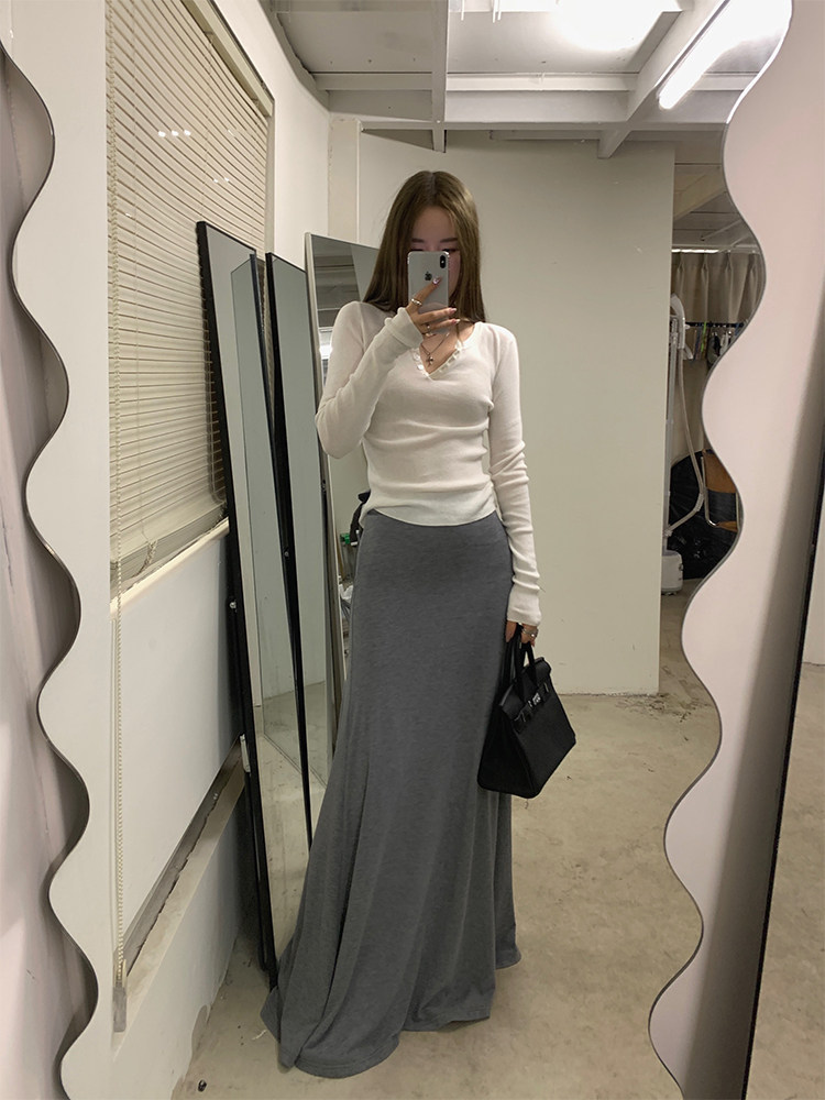 Ретро трикотажная летняя длинная юбка, крой «рыбий хвост», высокая талия, А-силуэт, по фигуре