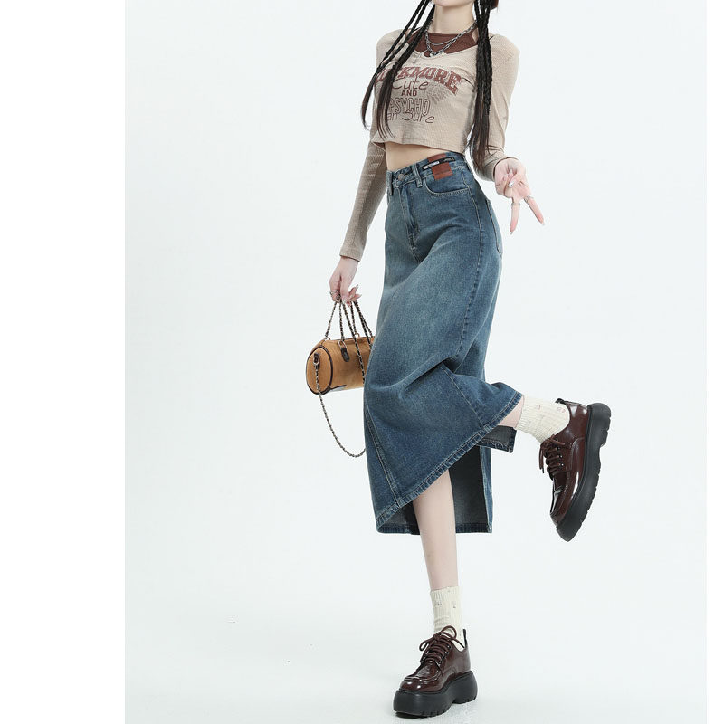 Летняя ретро длинная джинсовая юбка, высокая талия, А-силуэт, средней длины