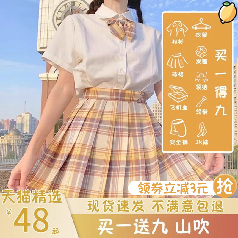 Студенческая юбка в складку, оригинальный летний японский комплект, высокая талия