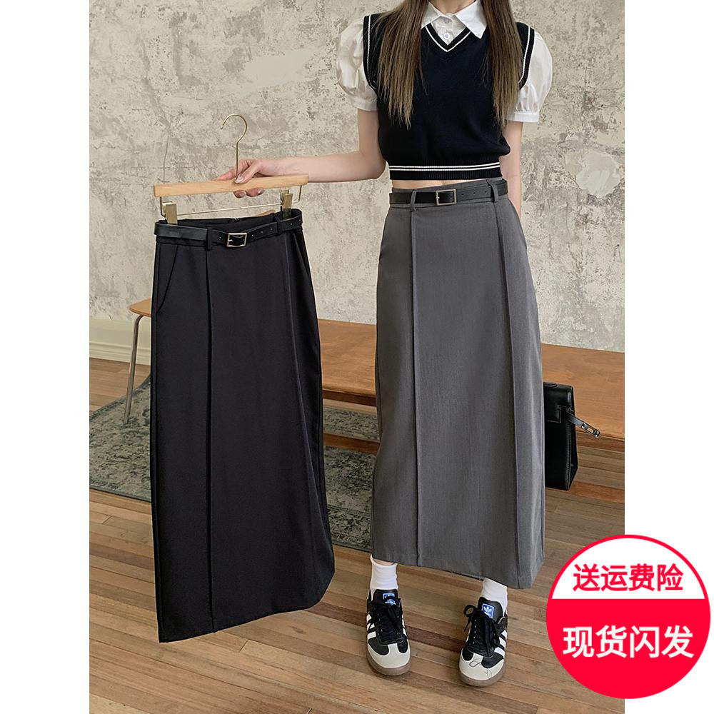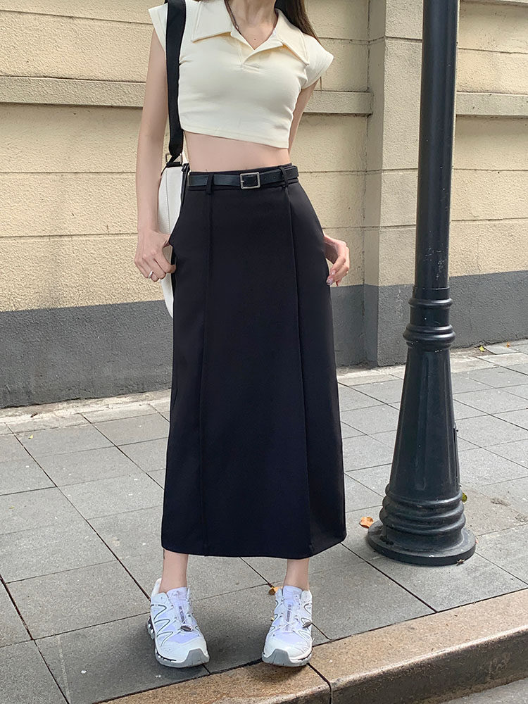 Приталенный костюм, длинная юбка, свободный прямой крой, большой размер, высокая талия, с акцентом на бедрах