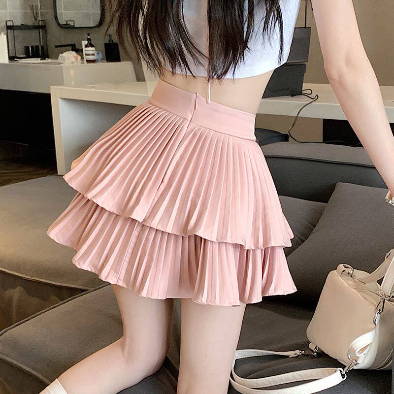Летняя дизайнерская юбка в складку, розовая мини-юбка, плиссированная юбка, высокая талия, тренд сезона, А-силуэт