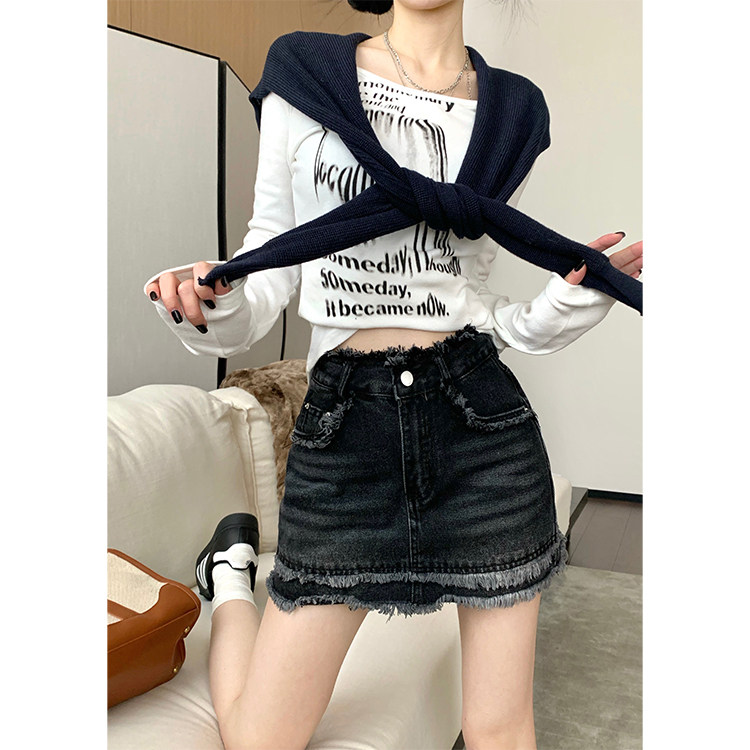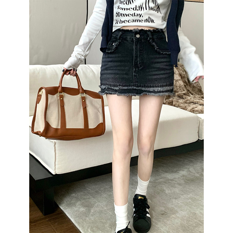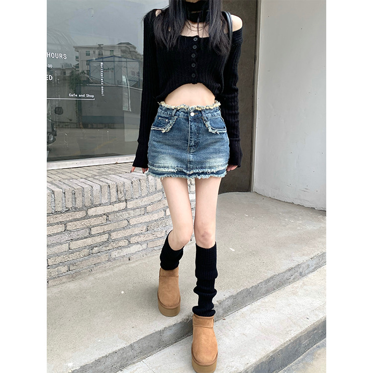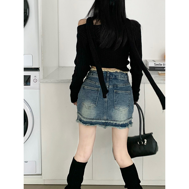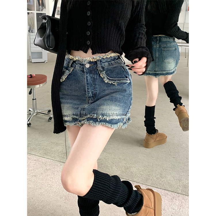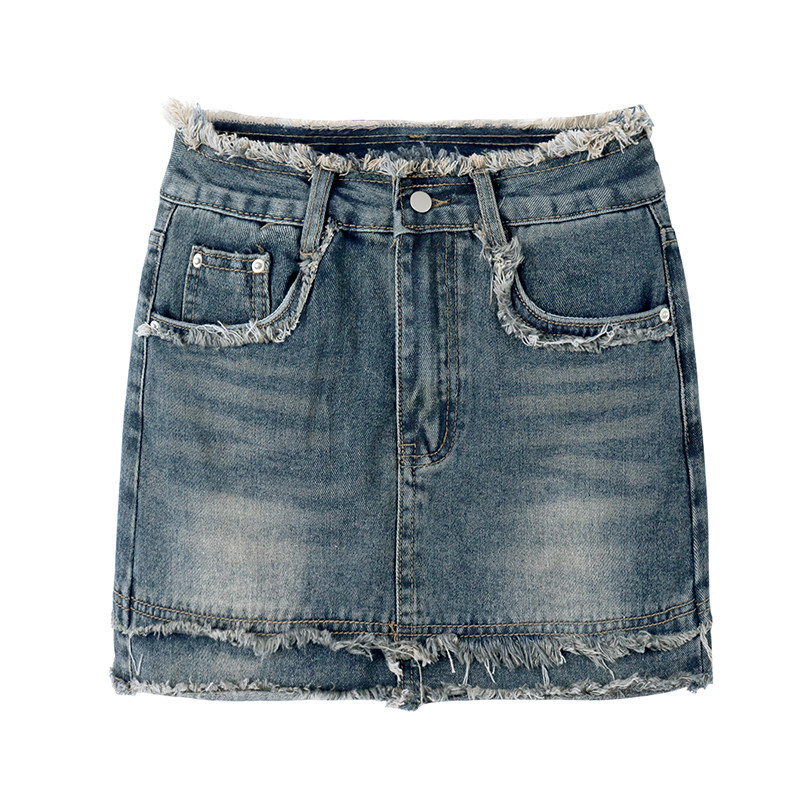 Ретро джинсовая юбка, мини-юбка, в американском стиле, большой размер, высокая талия, с акцентом на бедрах, А-силуэт