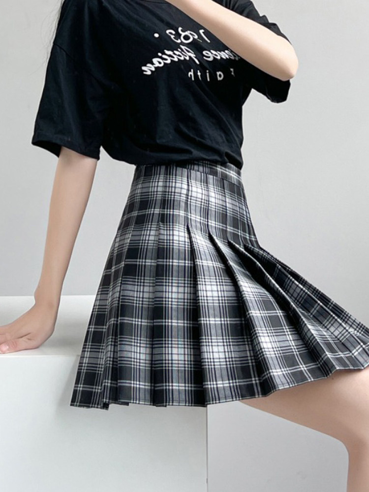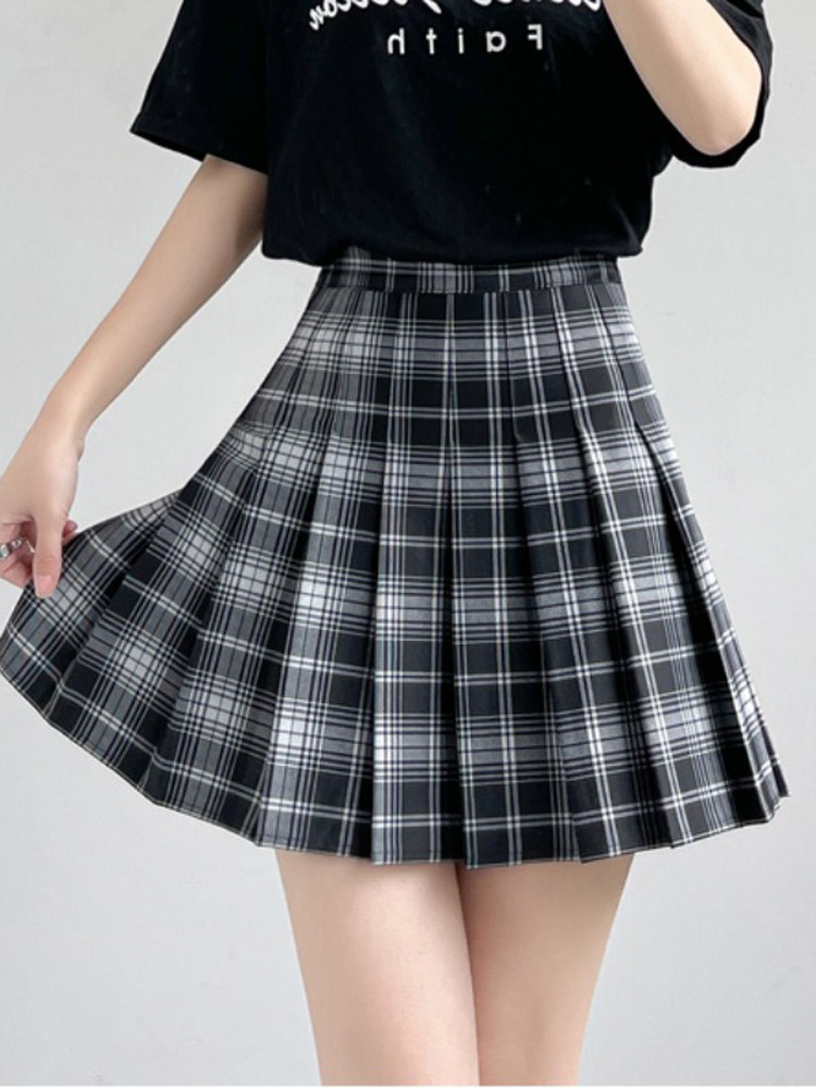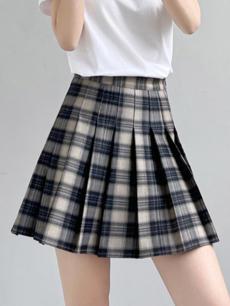 Летняя студенческая юбка в складку, коллекция 2023, высокая талия, А-силуэт