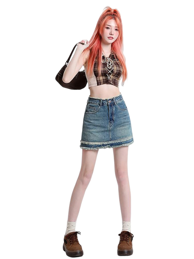 Ретро летняя джинсовая юбка, защитное белье, мини-юбка, высокая талия, А-силуэт