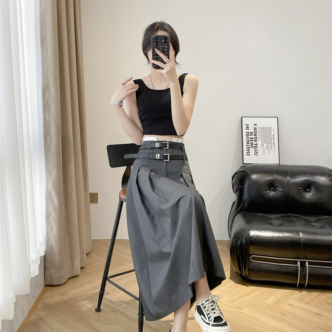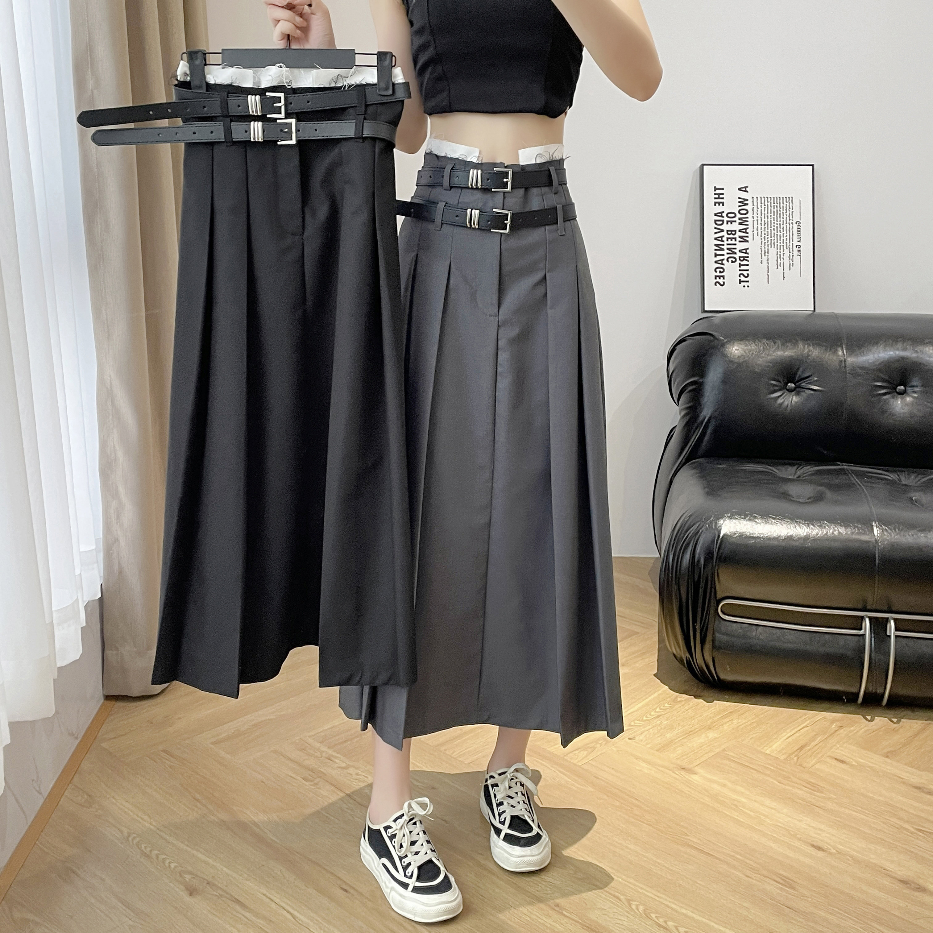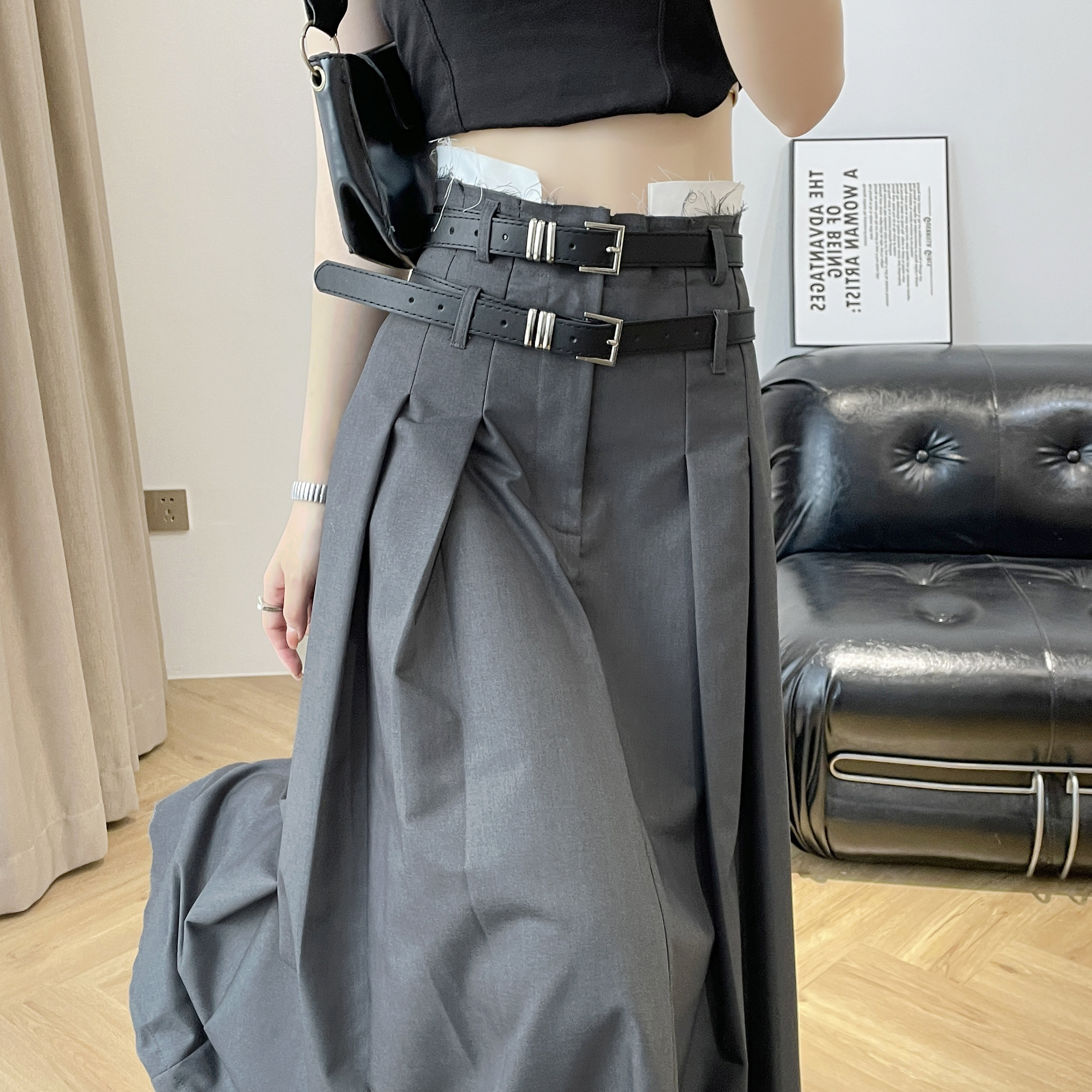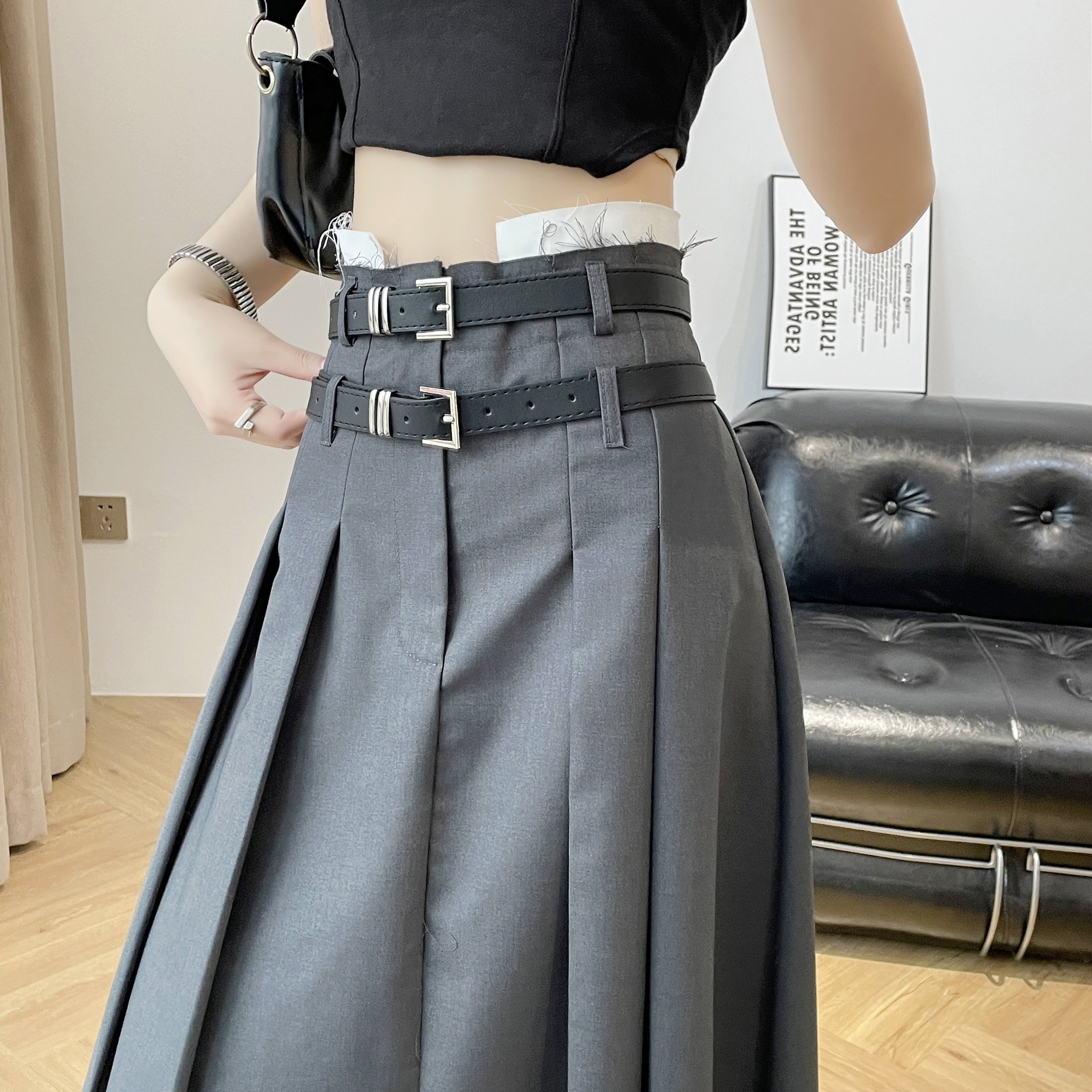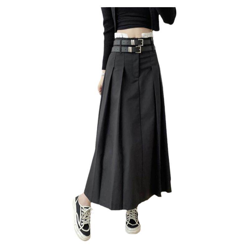 Дизайнерский приталенный ремень, юбка в складку, длинная юбка, костюм, тренд сезона, высокая талия, А-силуэт, плиссированная юбка, изысканный стиль
