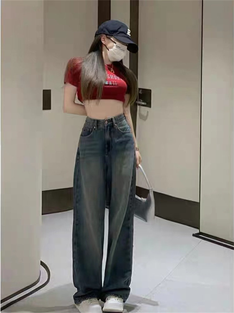 Синие прямые свободные джинсы, весенние летние длинные штаны, коллекция 2023, высокая талия