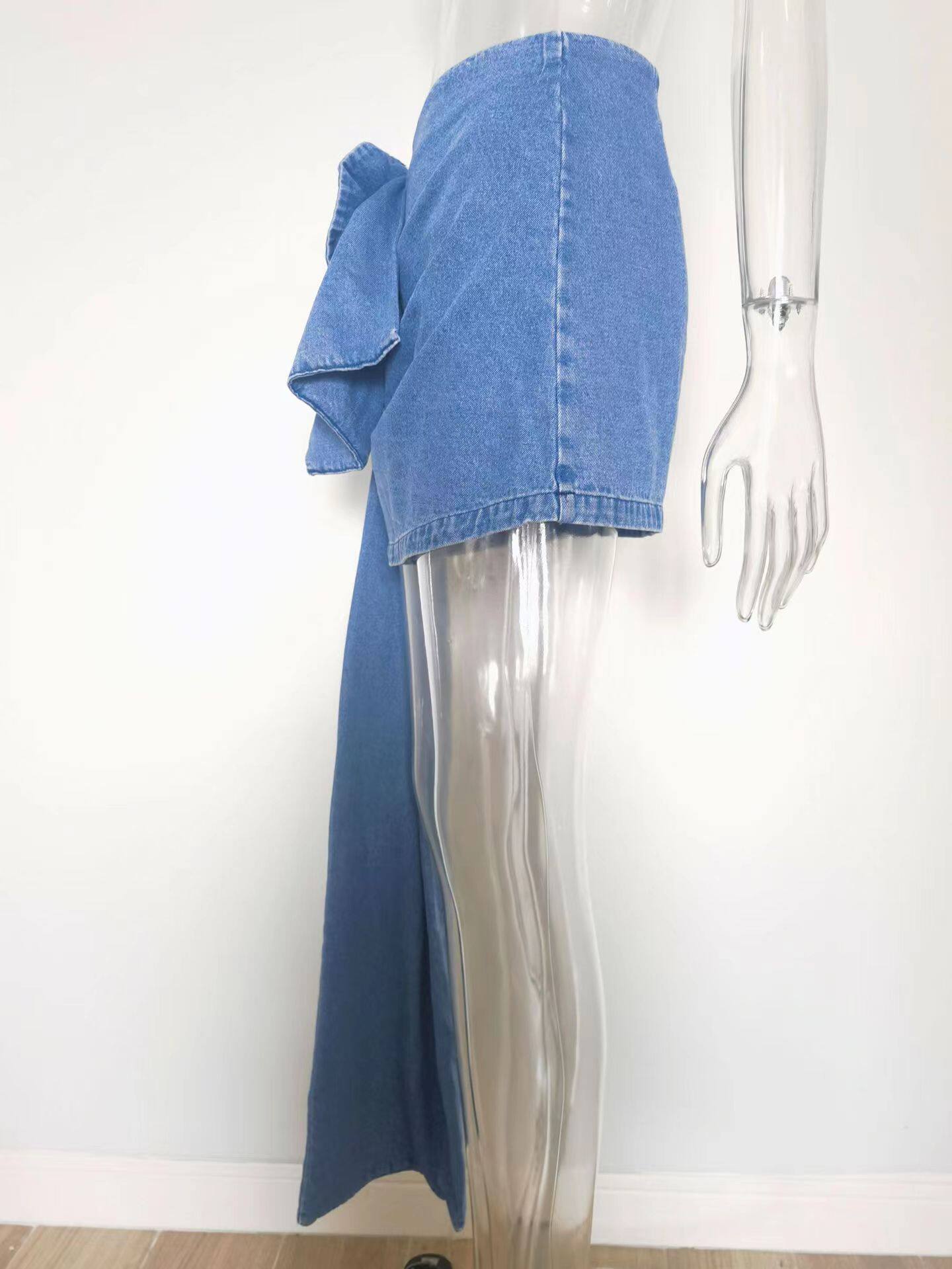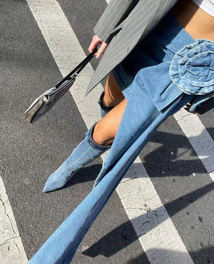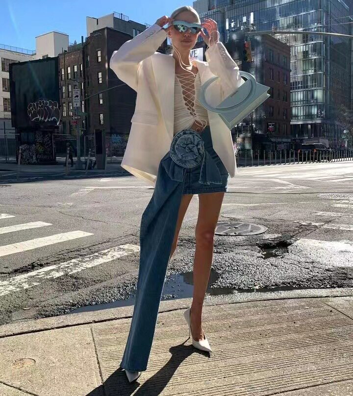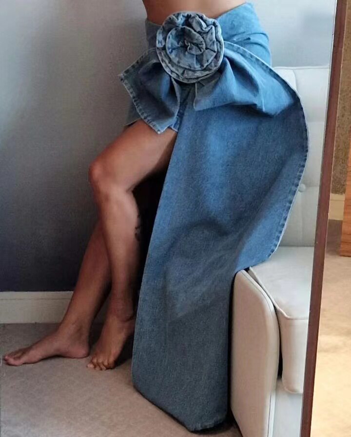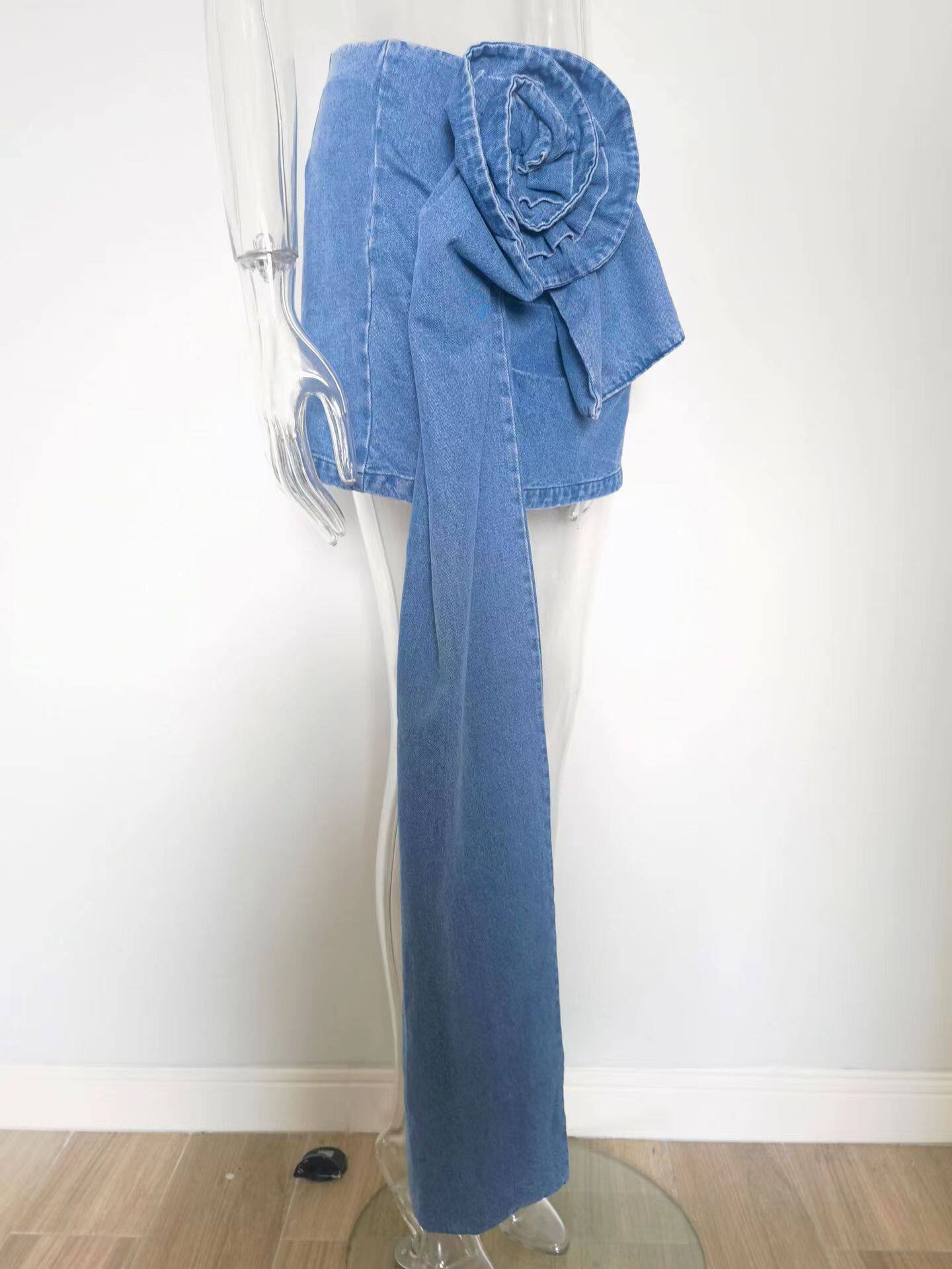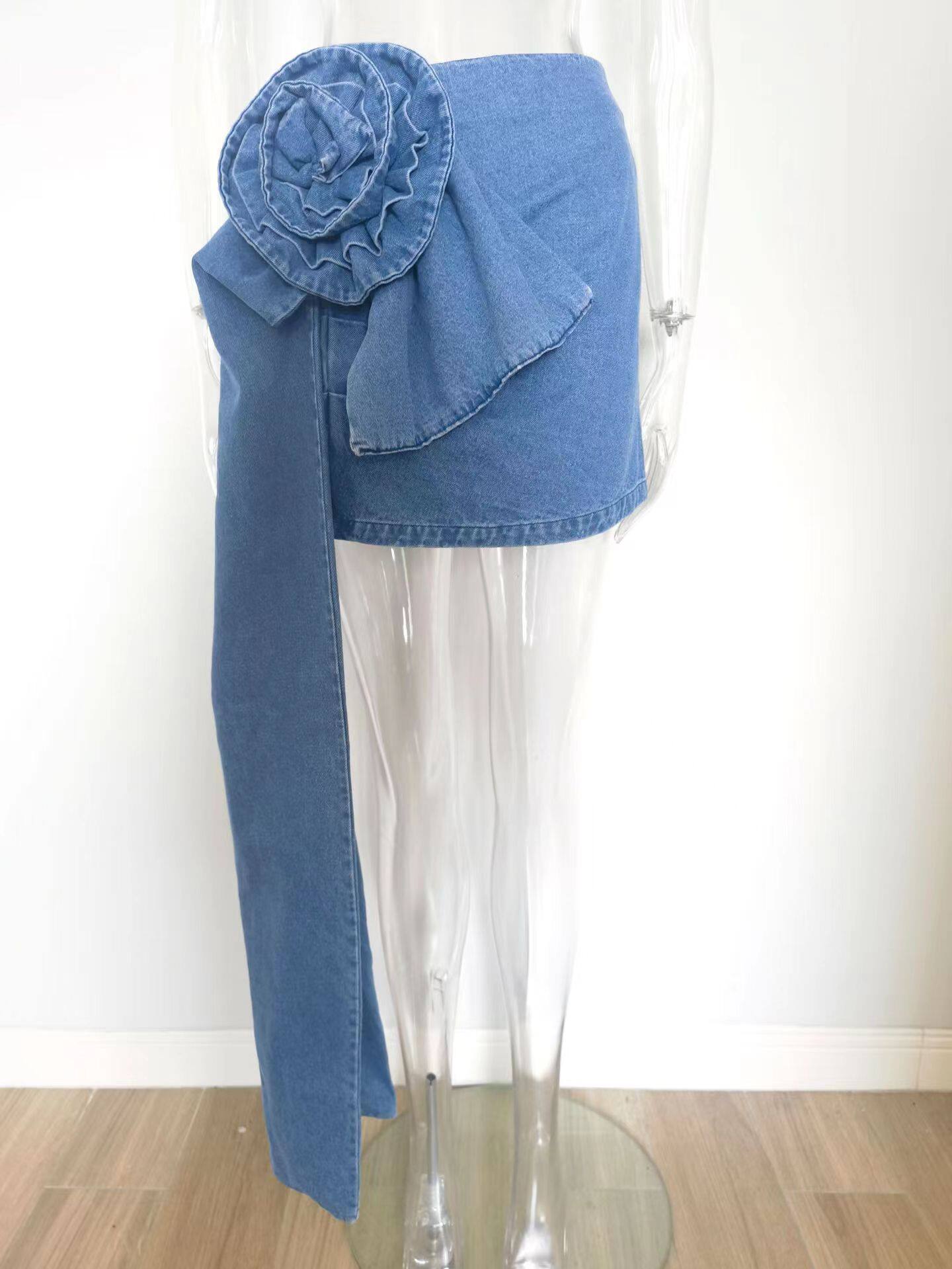 Европейская и американская новая слои сложенной розовой ручной цветочной юбки цветочной джинсовой юбки цветочной джинсовой