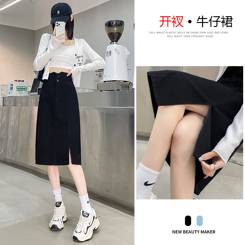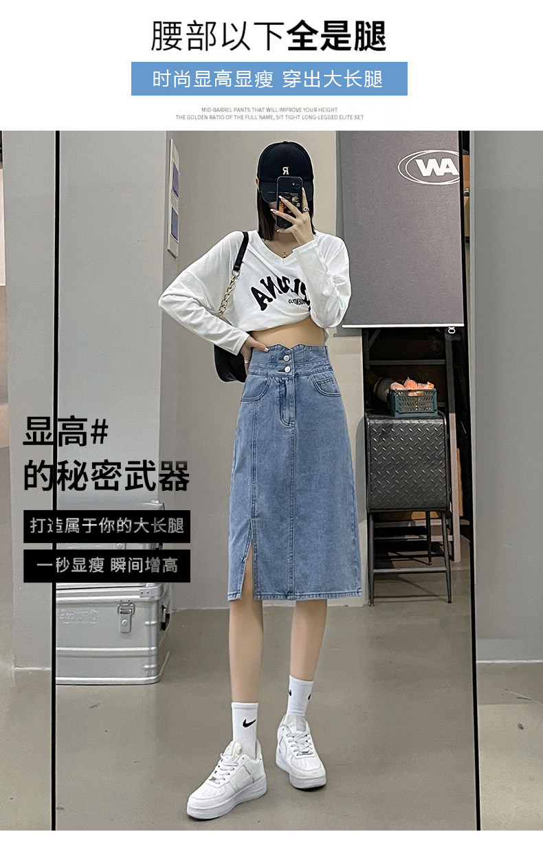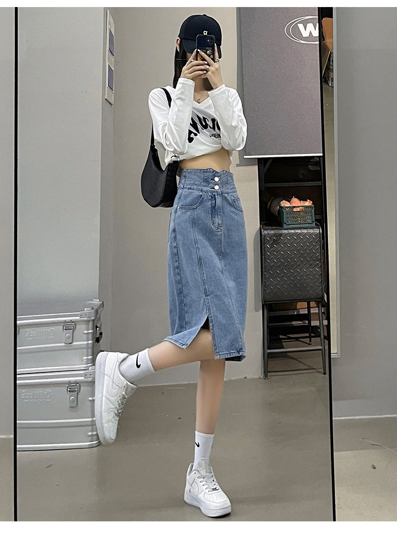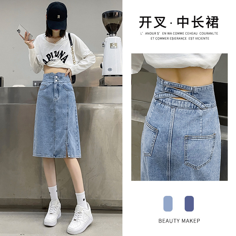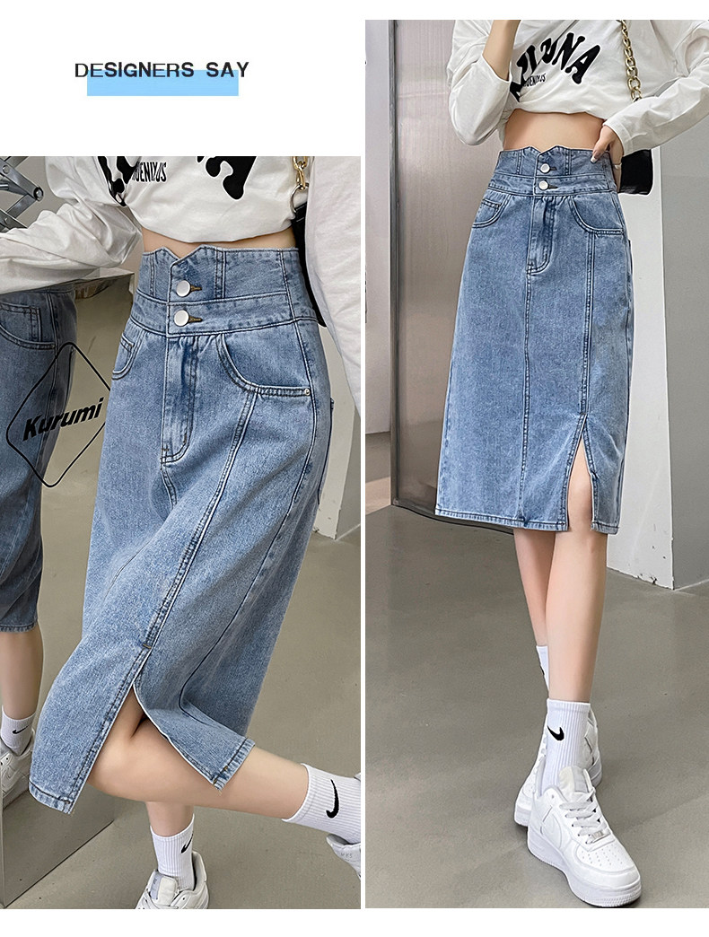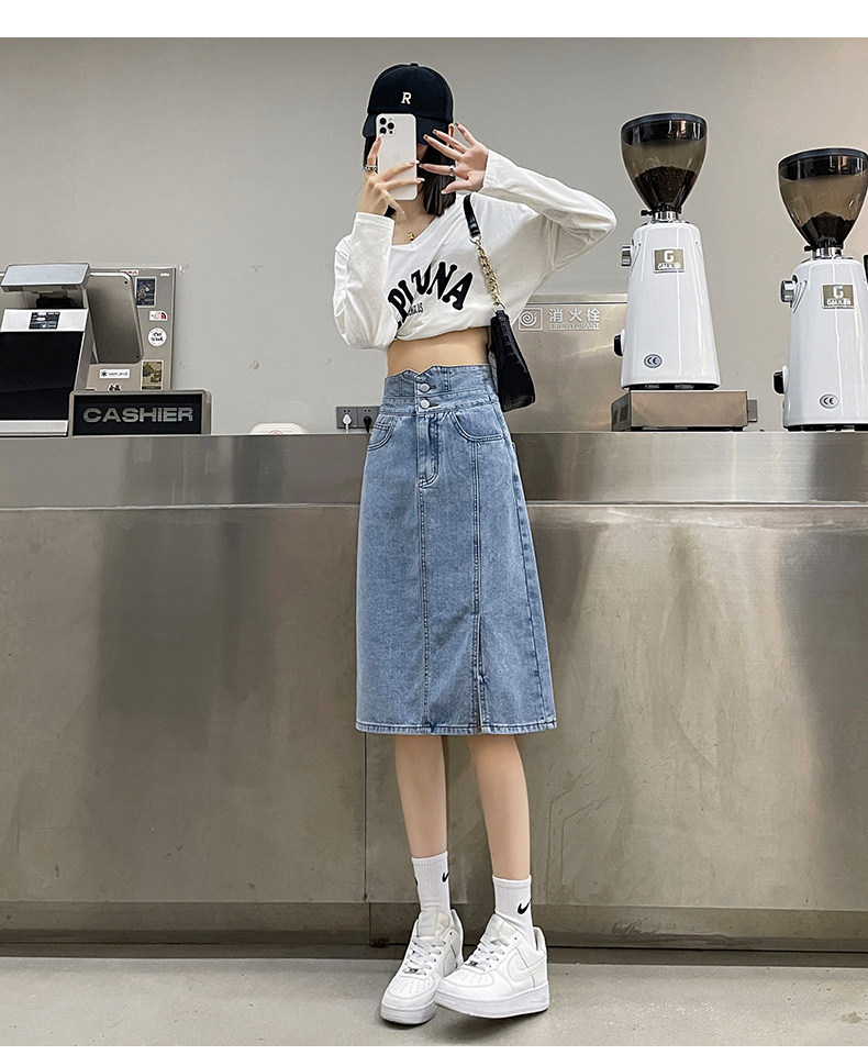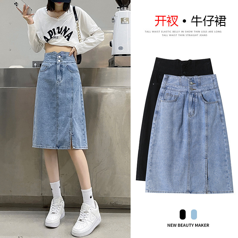 Осенняя демисезонная летняя длинная джинсовая юбка, высокая талия, с акцентом на бедрах, А-силуэт