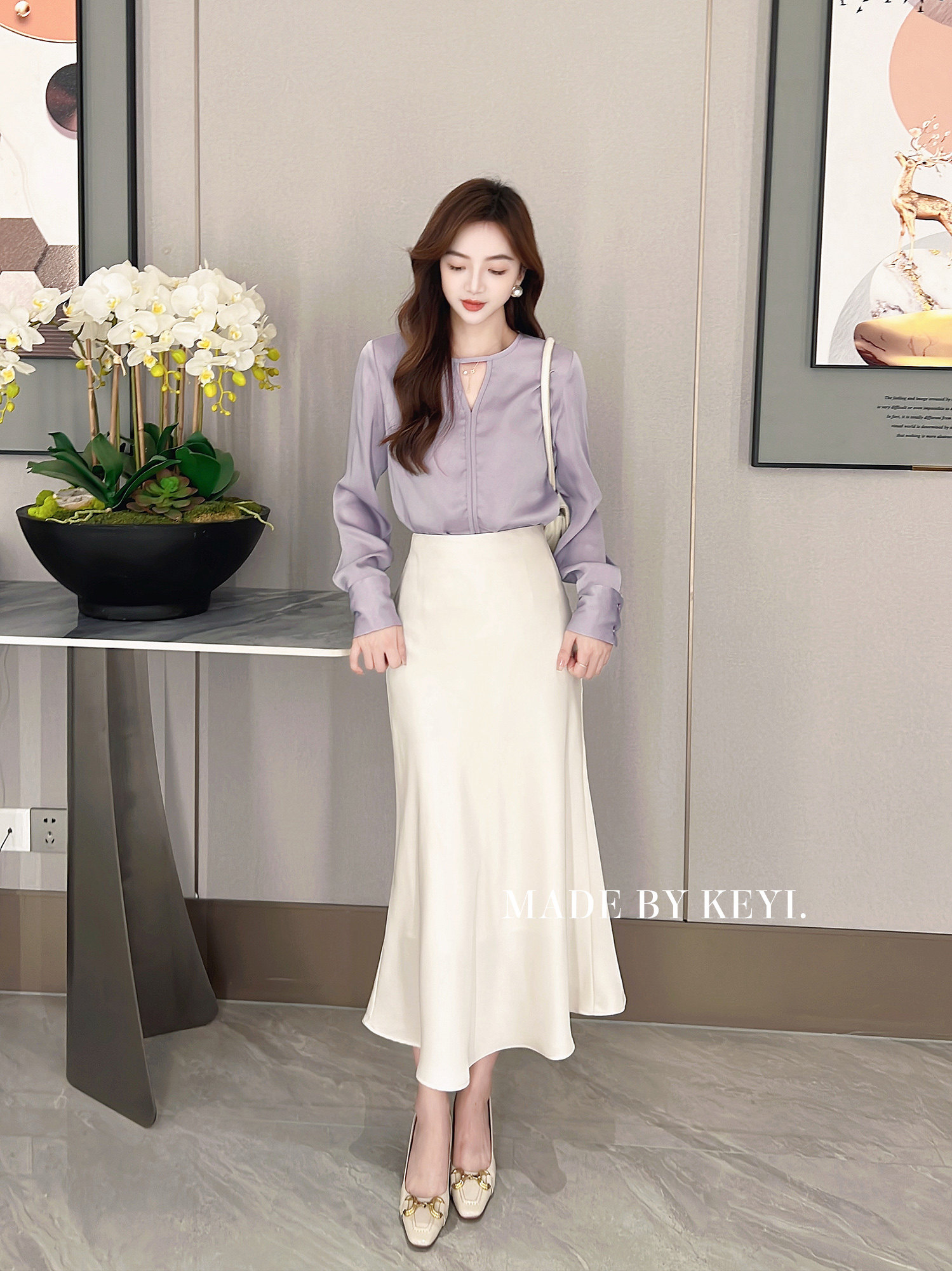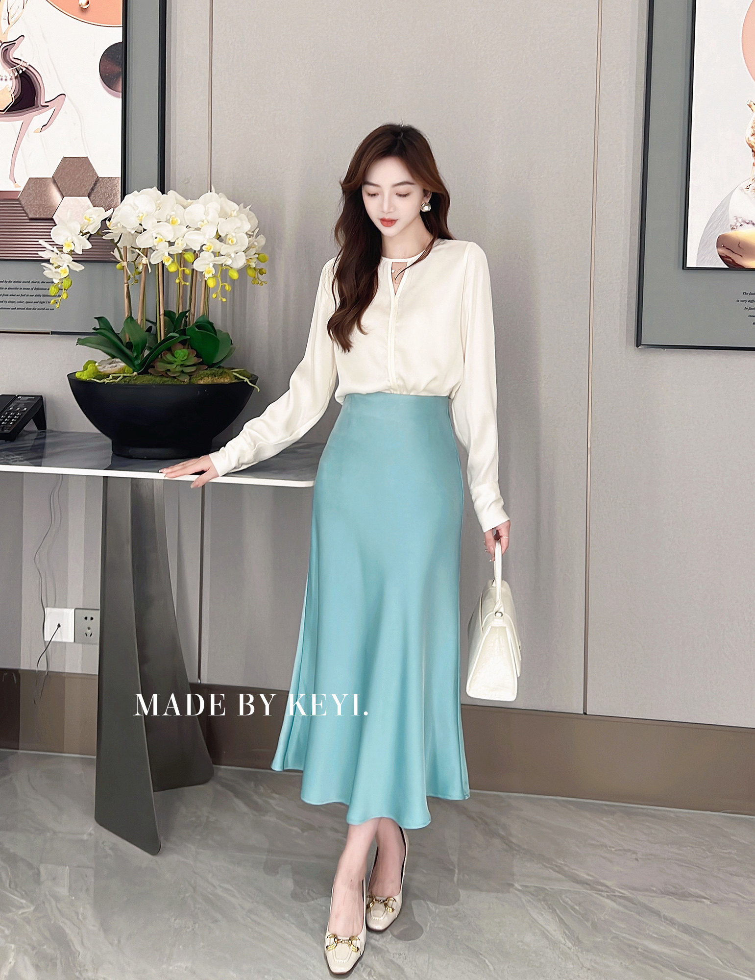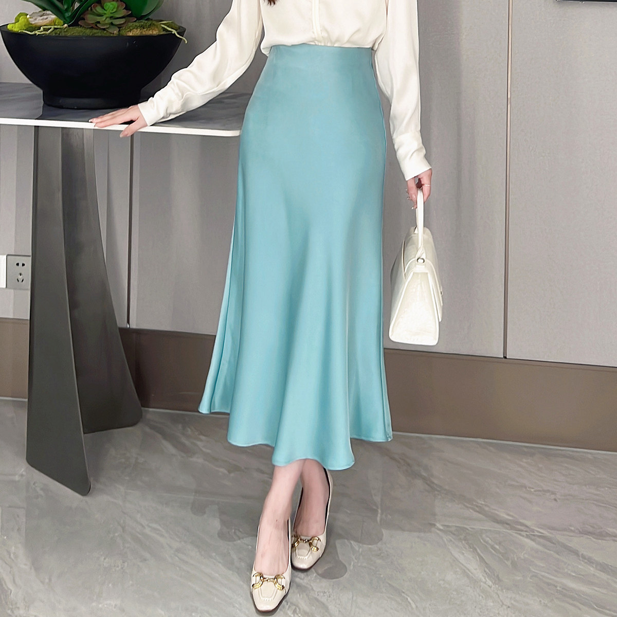 Летняя приталенная юбка, рыбий хвост, высокая талия, французский стиль, изысканный стиль, с акцентом на бедрах