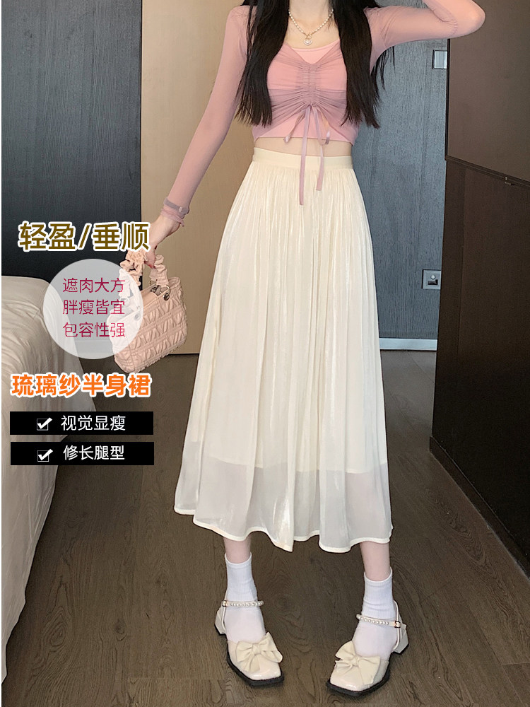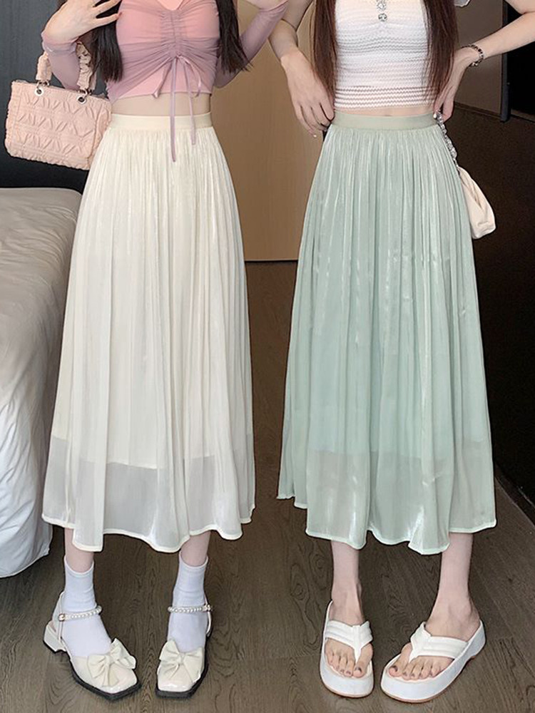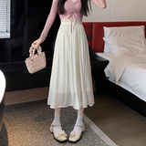 Летняя длинная приталенная юбка в складку, изысканный стиль, плиссированная юбка, средней длины, А-силуэт