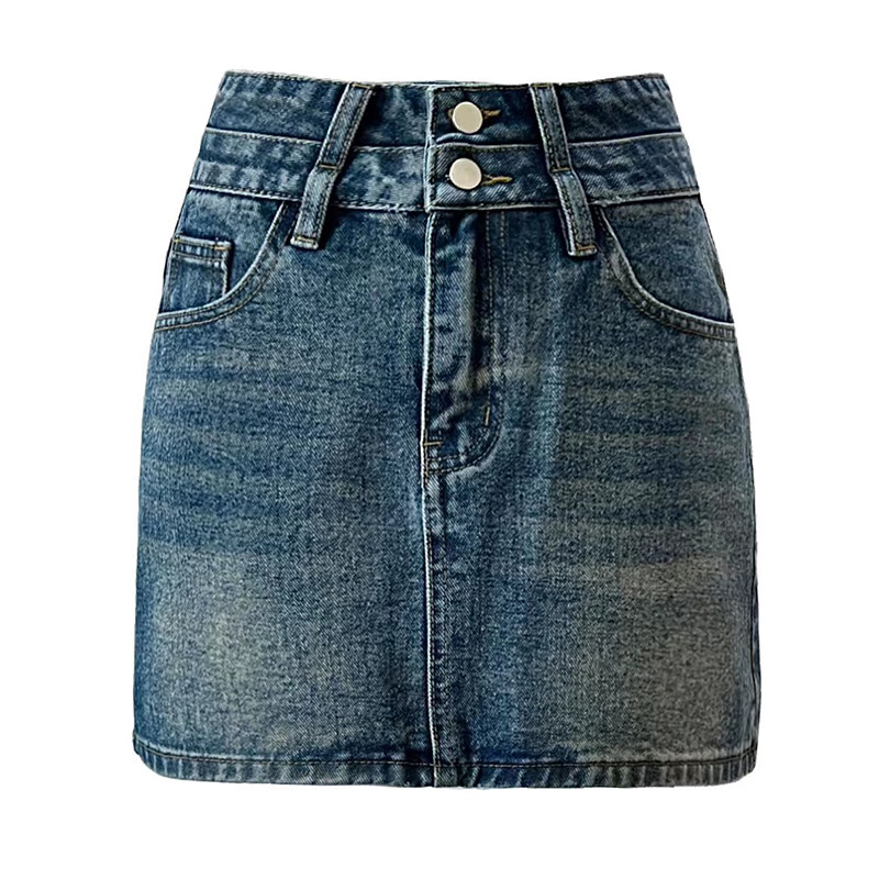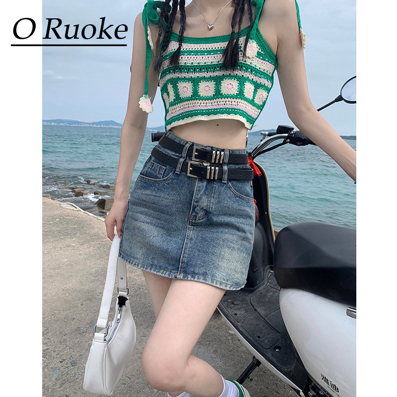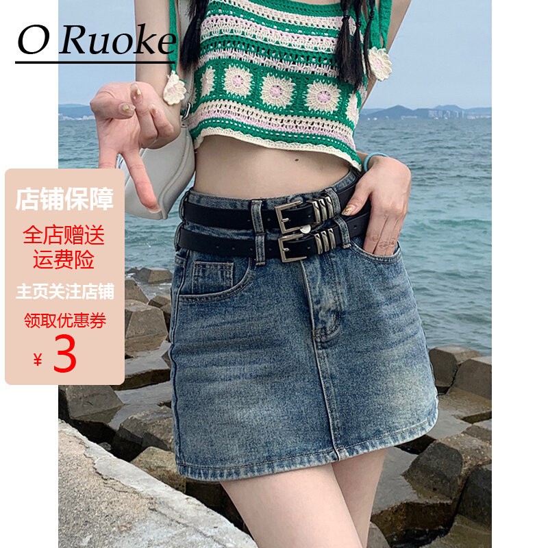 Ремень, летняя джинсовая юбка, ретро приталенное защитное белье, с акцентом на бедрах, А-силуэт