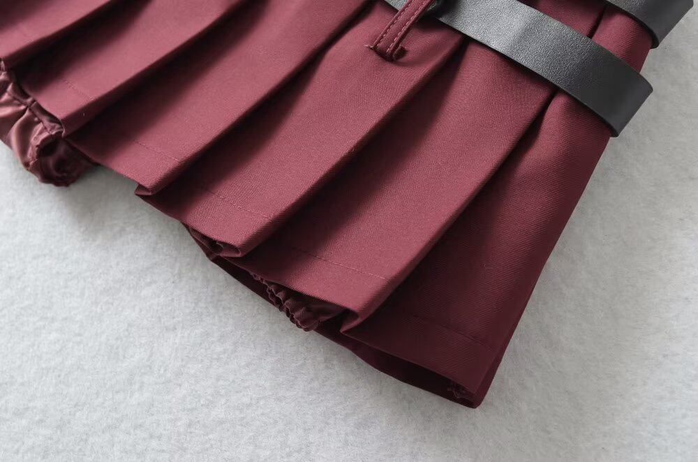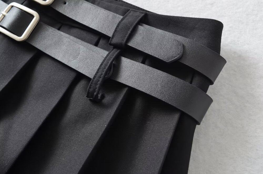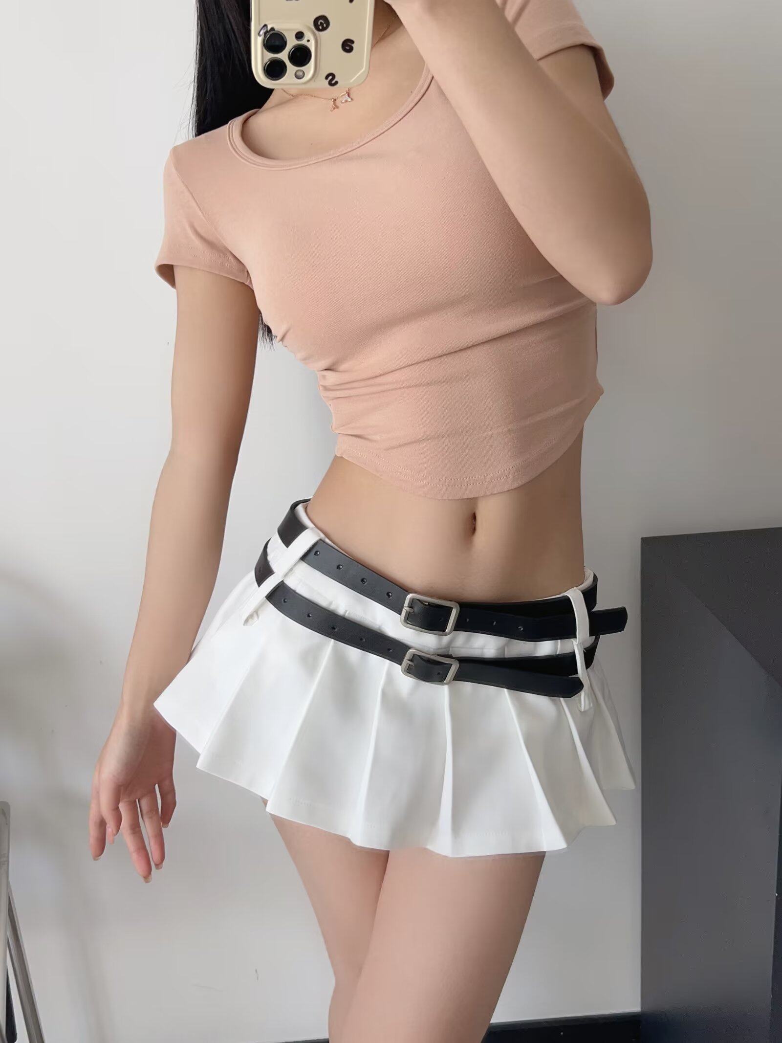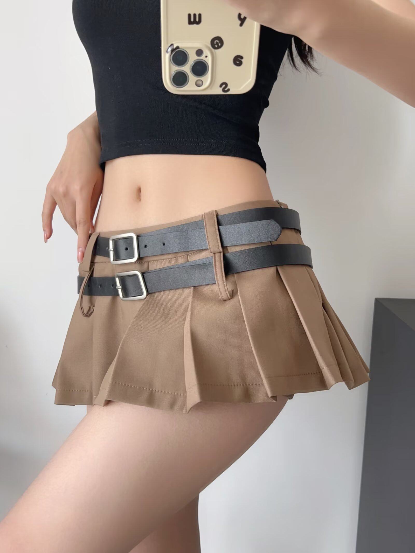 Ремень, маленькая сексуальная юбка в складку, европейский стиль, в американском стиле