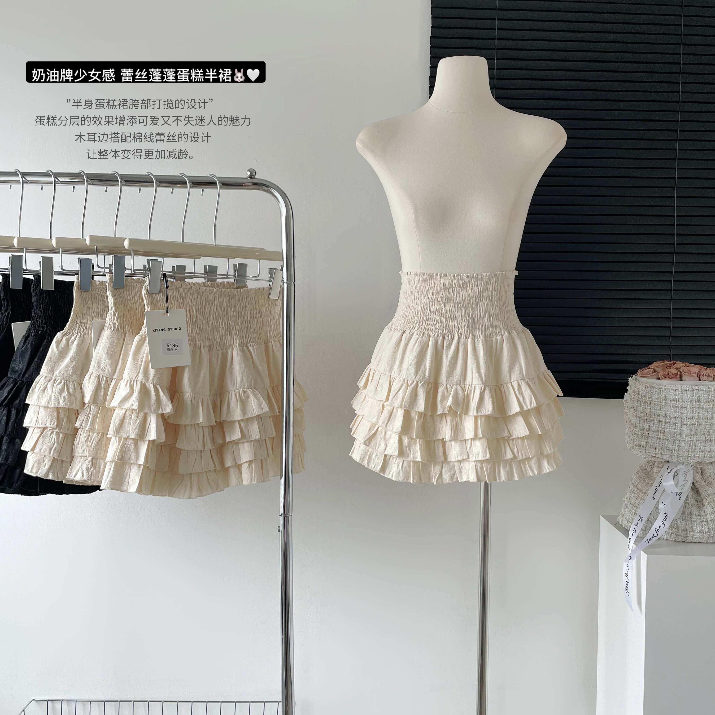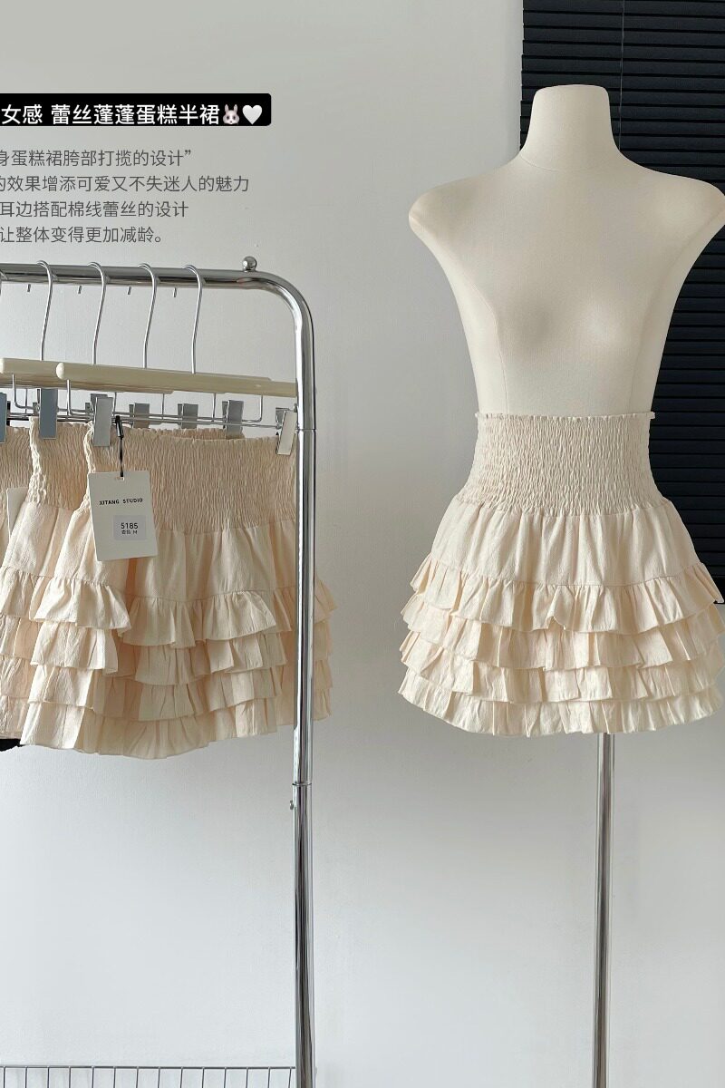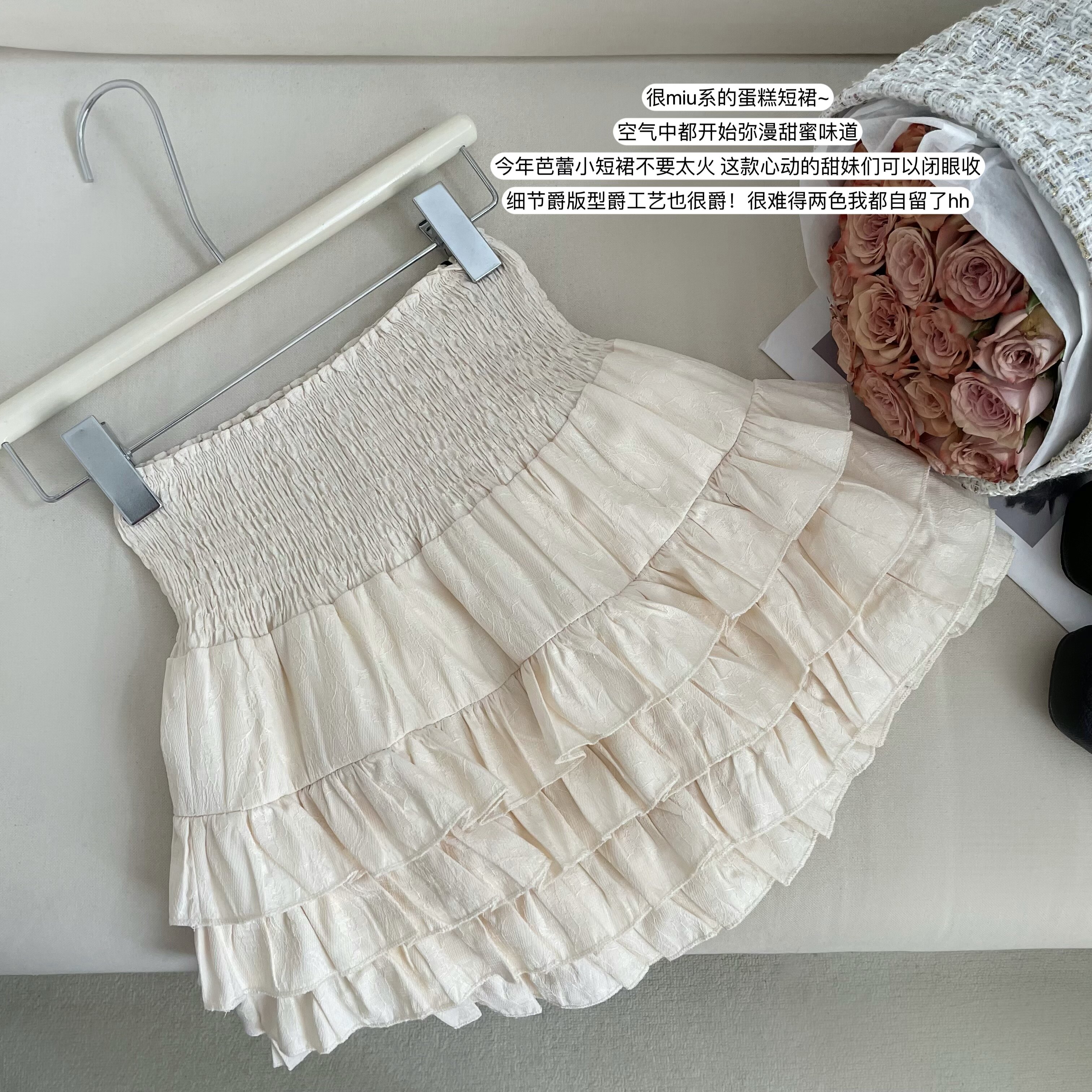 Кремовая милая летняя приталенная юбка, кружевная дизайнерская мини-юбка, А-силуэт, тренд сезона
