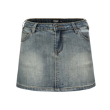 FMG East Вьетнамская джинсовая джинсовая мини -юбка ретро Старая мода -модная юбка для бедра Эластичная джинсовая юбка