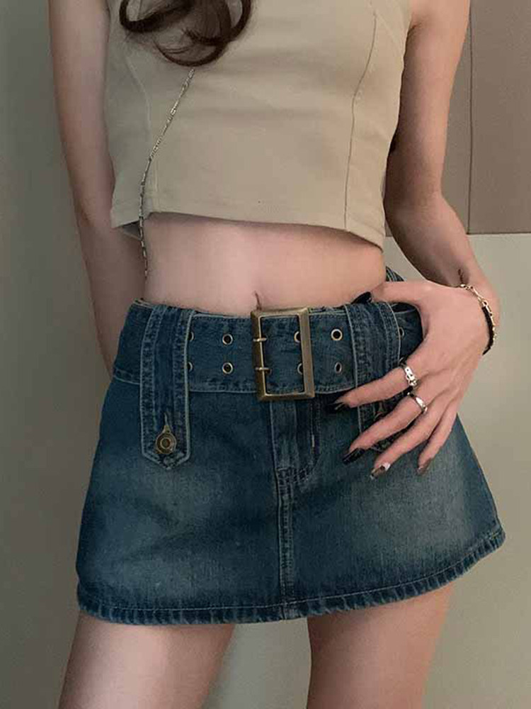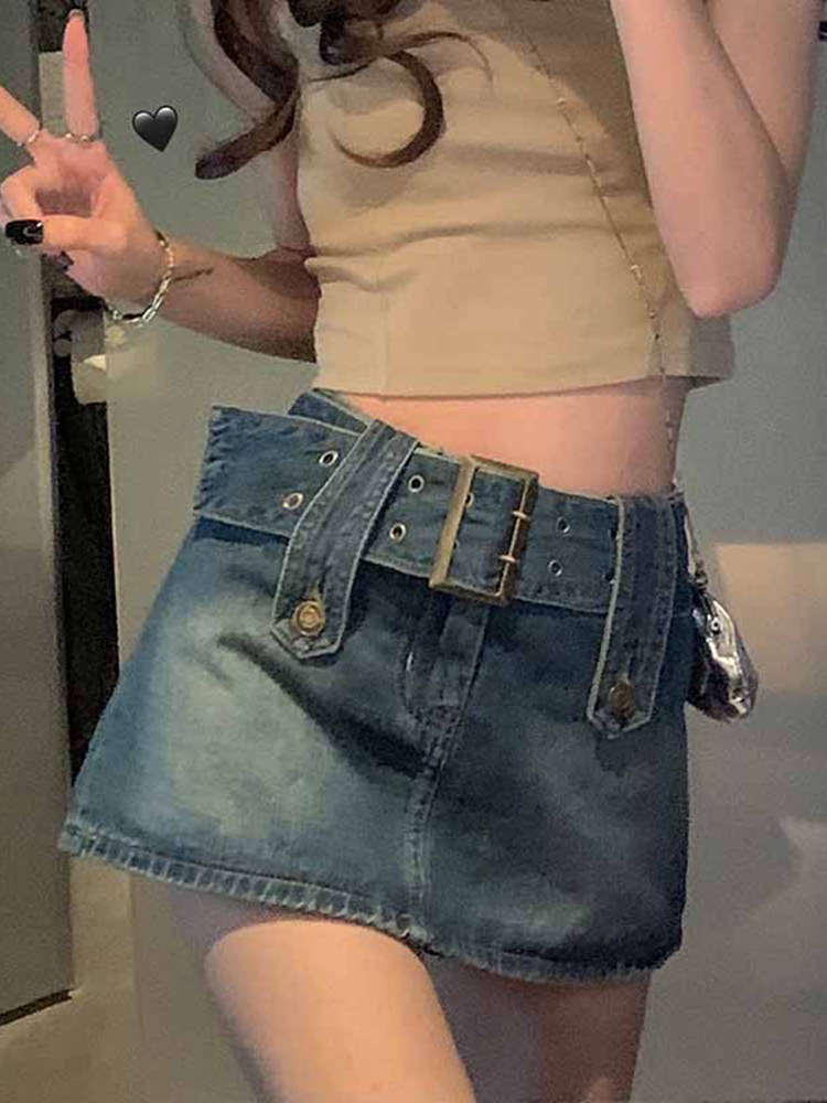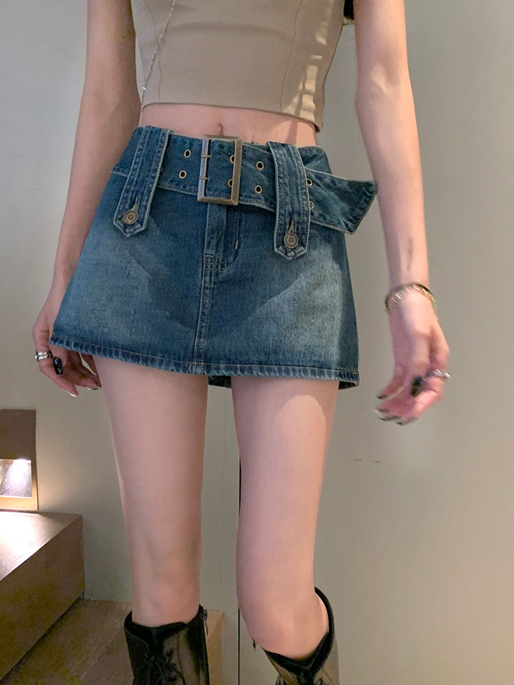 Весенняя ретро джинсовая юбка, приталенная мини-юбка, большой размер, подходит для полных девушек, с акцентом на бедрах